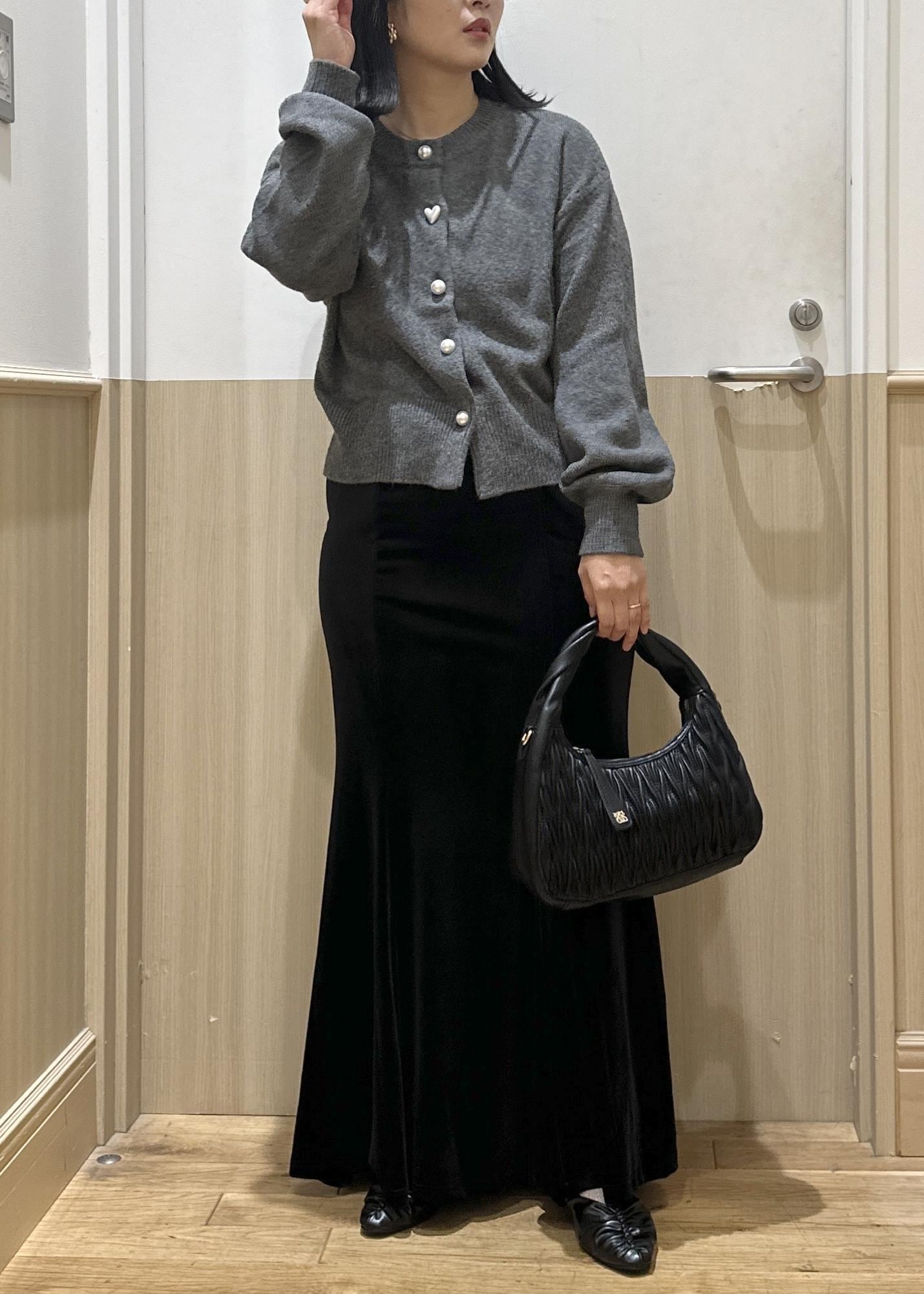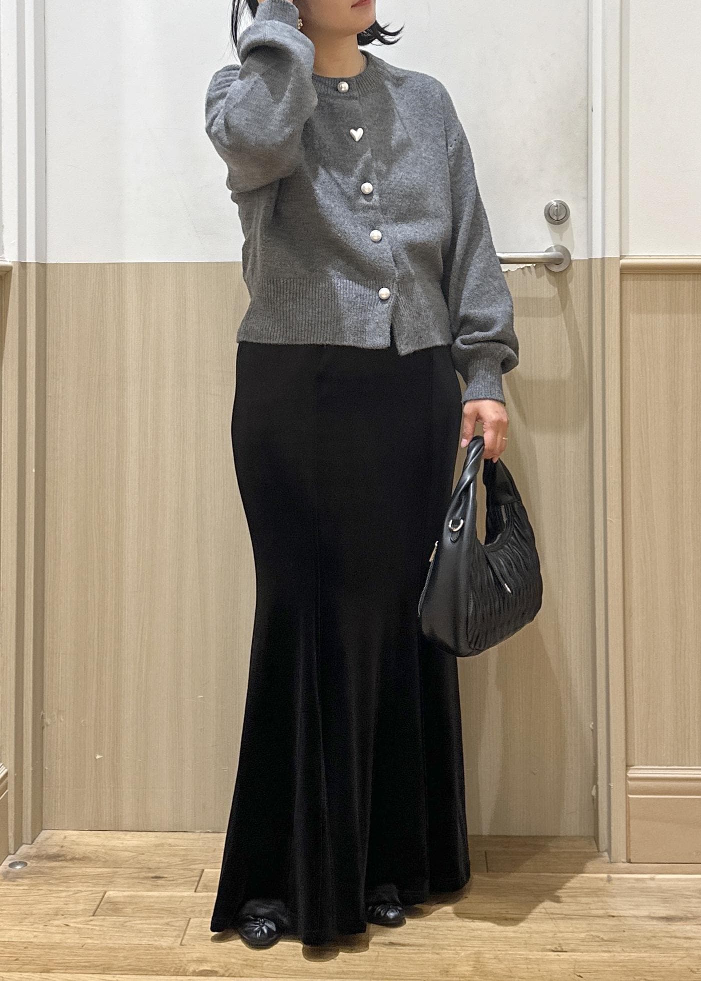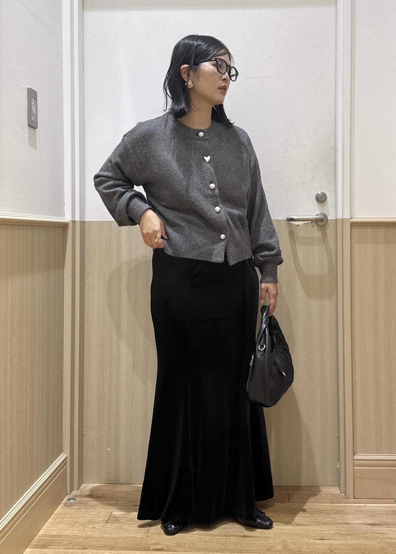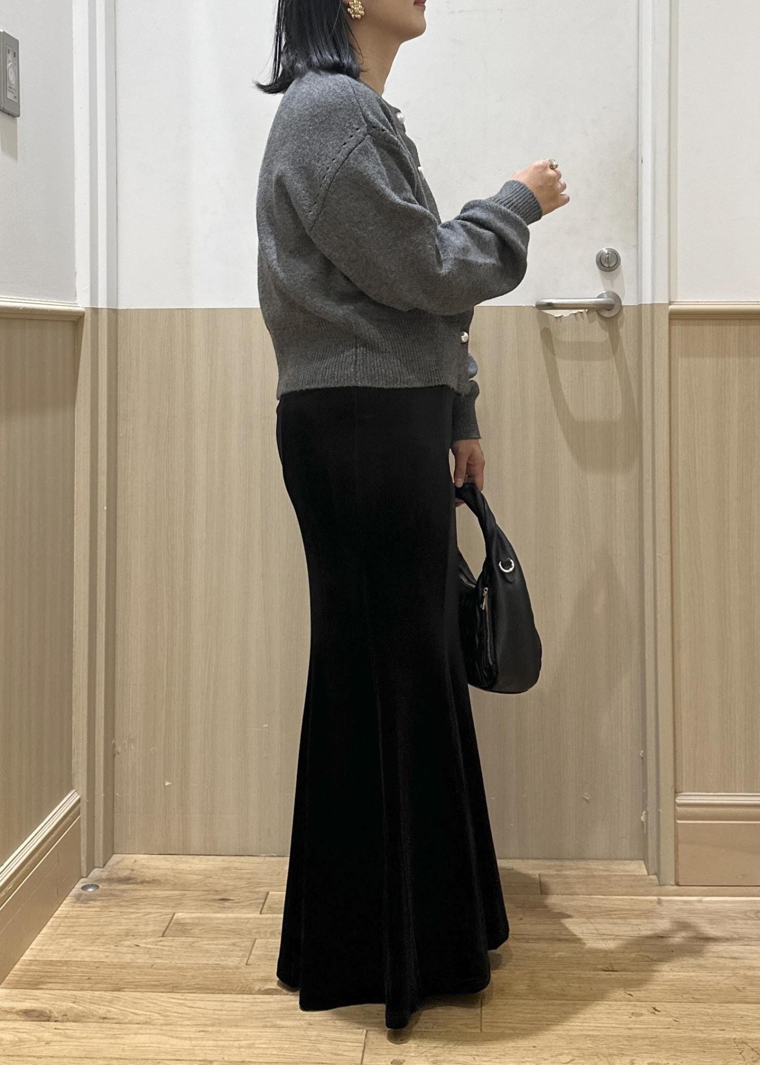 トレンドのベロア素材、カーデやシャツのインナーに合わせて今年らしいコーデに! -