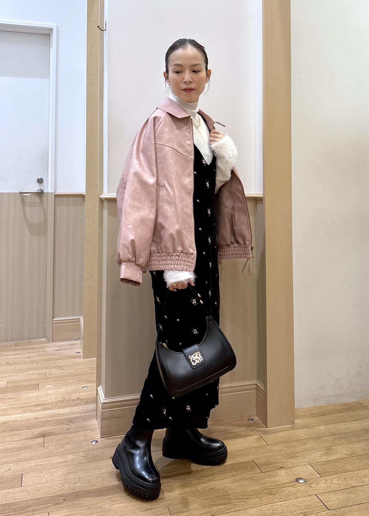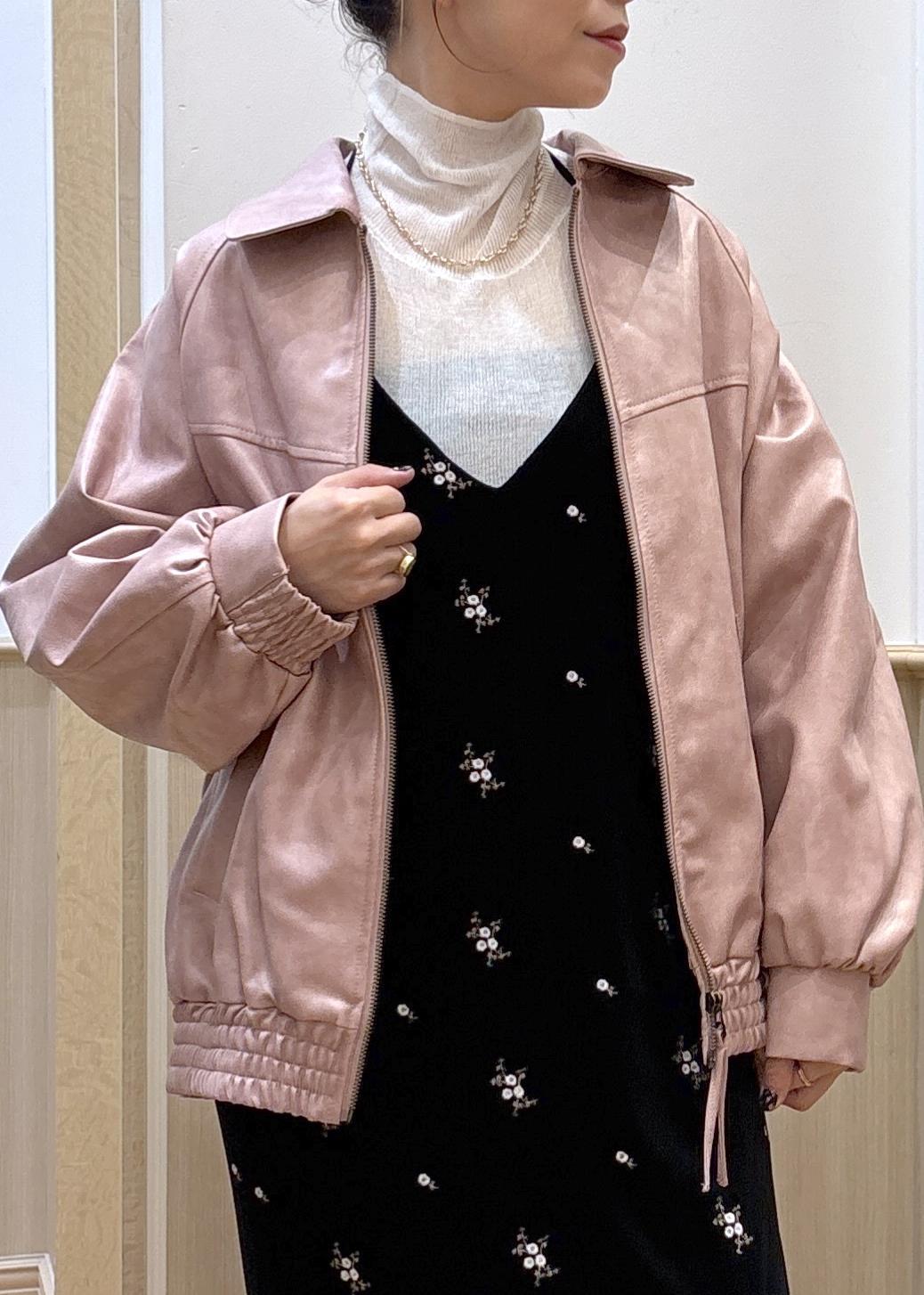 VIS合皮&スエードライクジップアップブルゾンピンク系 / F¥10,989レビュー153cmでかなりゆったり目でお尻がすっぽり隠れる丈感です。