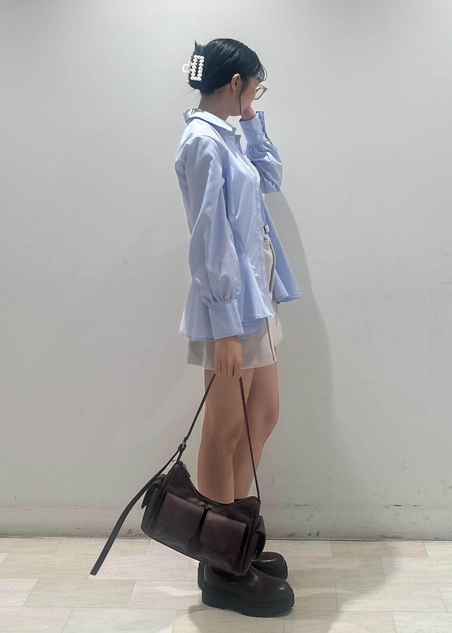 VISヘムデザインフレアシャツ/イージーケアサックス / F¥5,489レビューイレヘムデザインと高めの切り替えでスタイルアップ◎