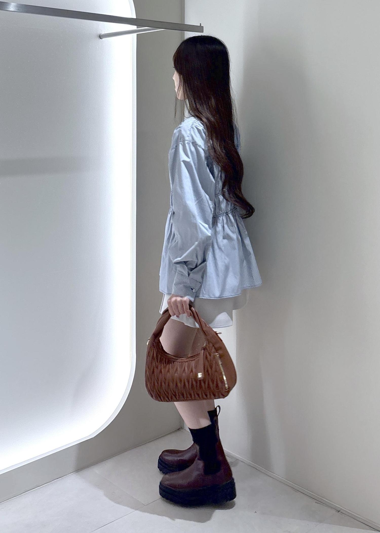 中にゴムが入っているので着たときにすっきりと見えます。 -