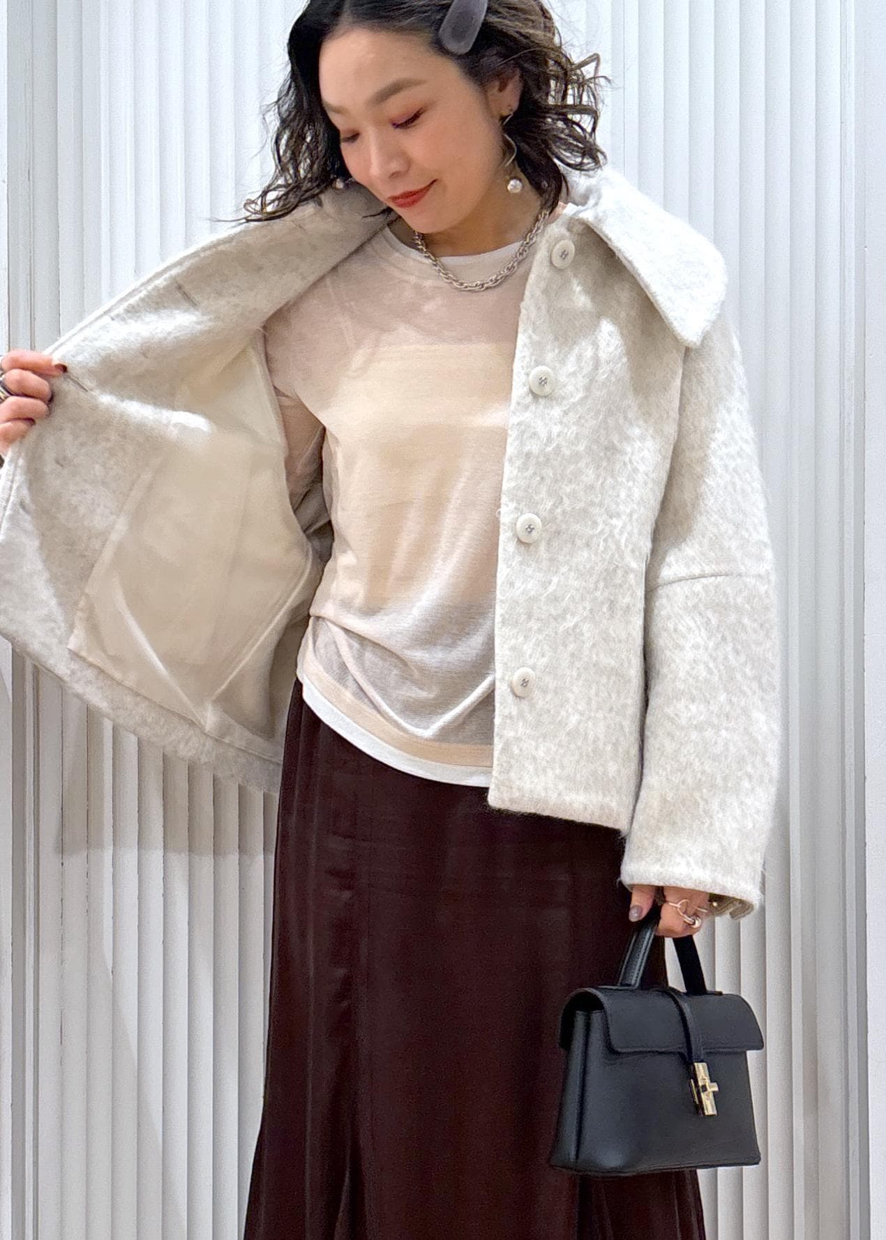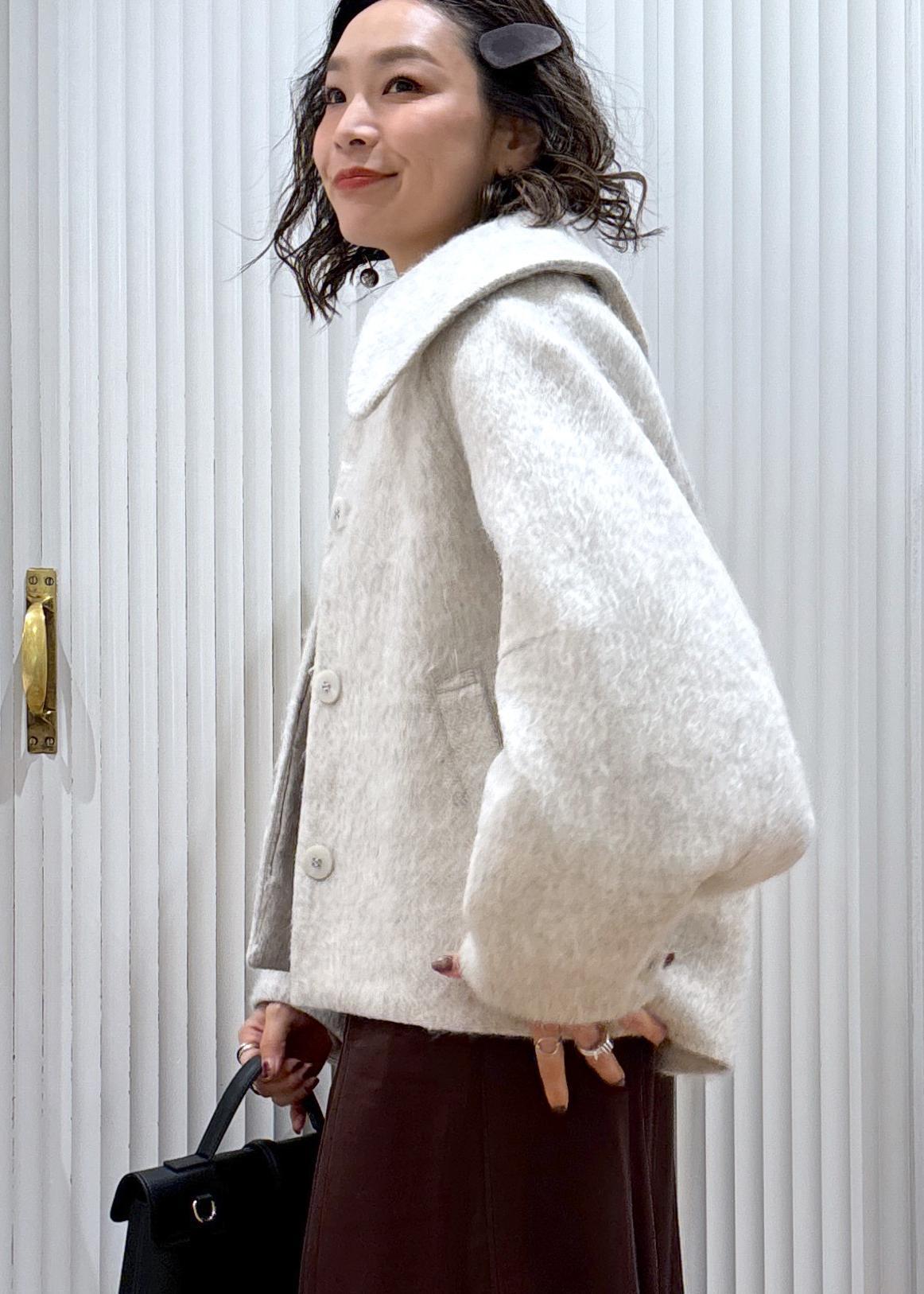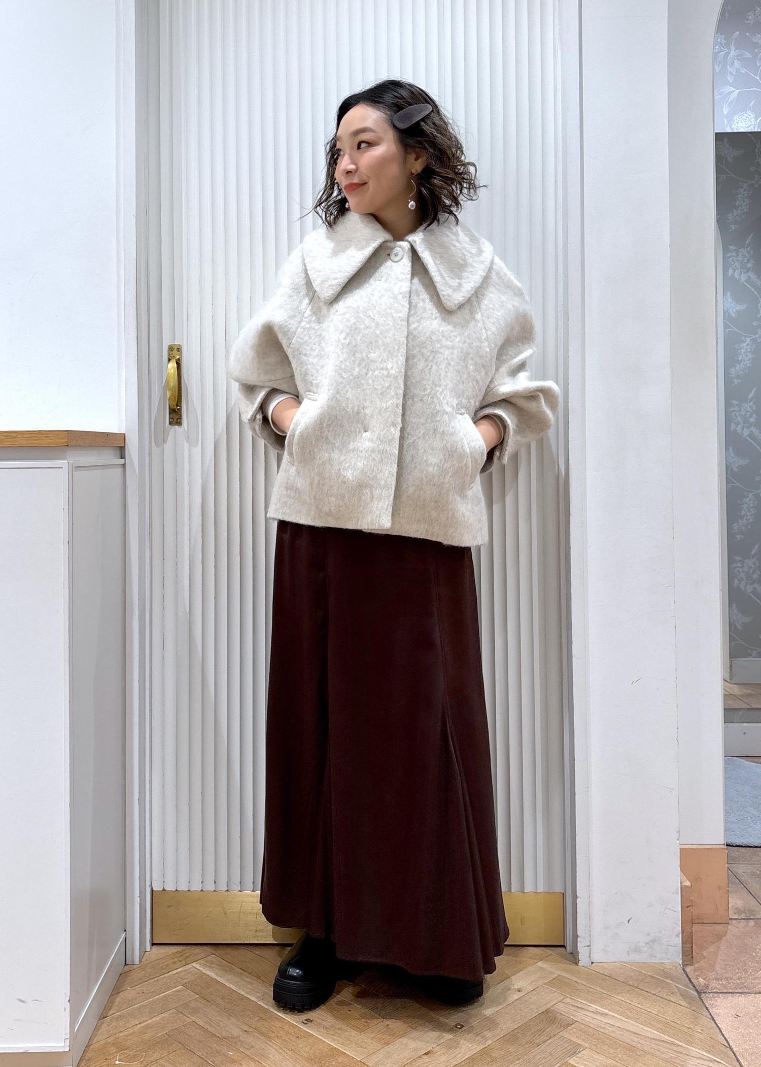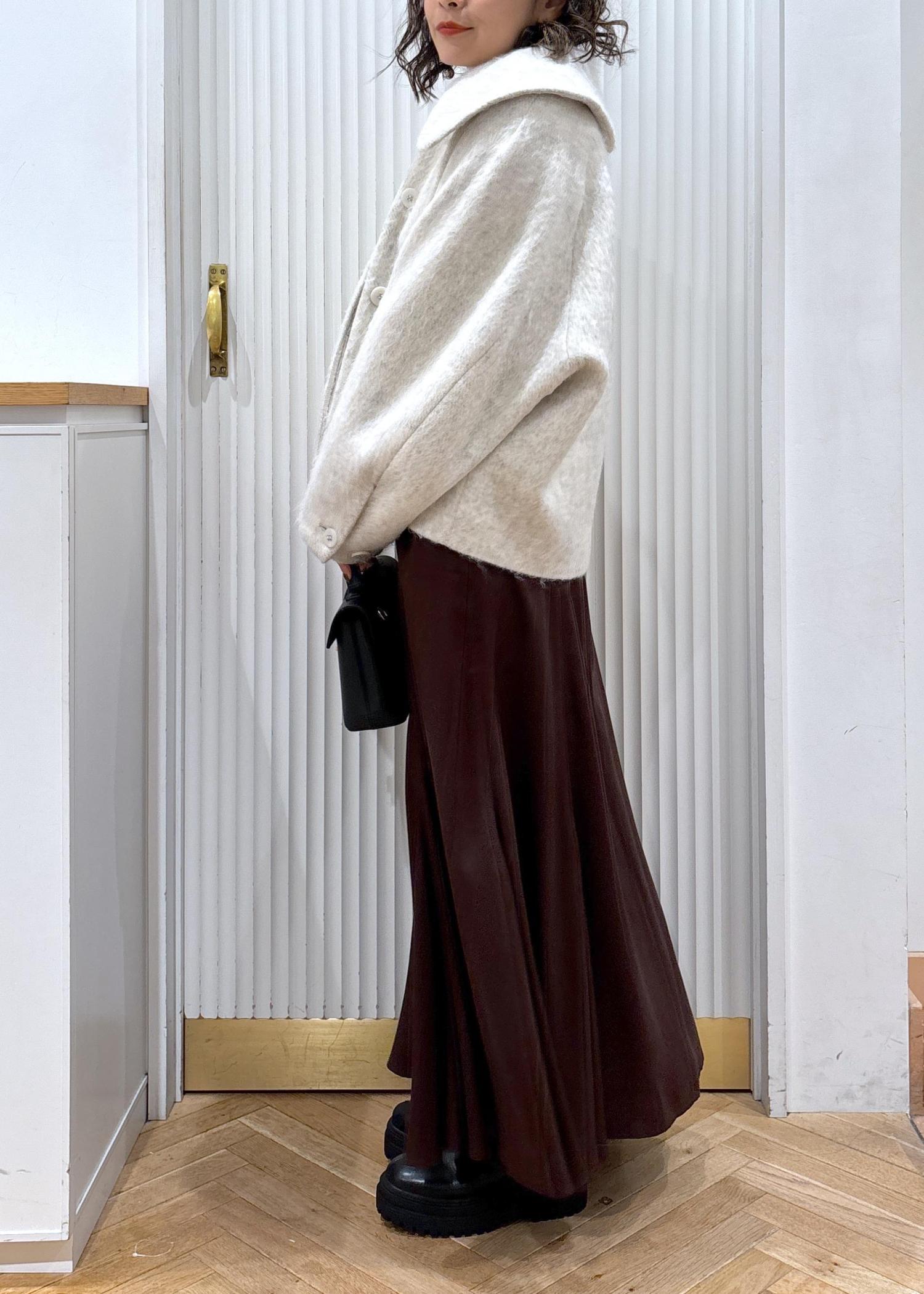 去年も大人気だったショートコートをゆったり着れるシルエットのマーメイドシルエットのスカートで合わせた、冬のオトナフェミニンスタイル♡