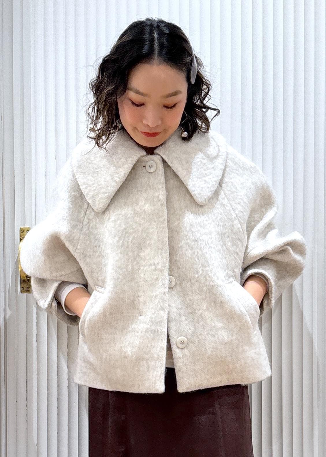コートが主役になる季節だからこそ、大人可愛いビッグカラーで、しっかり小顔効果も狙ったコーデに♫