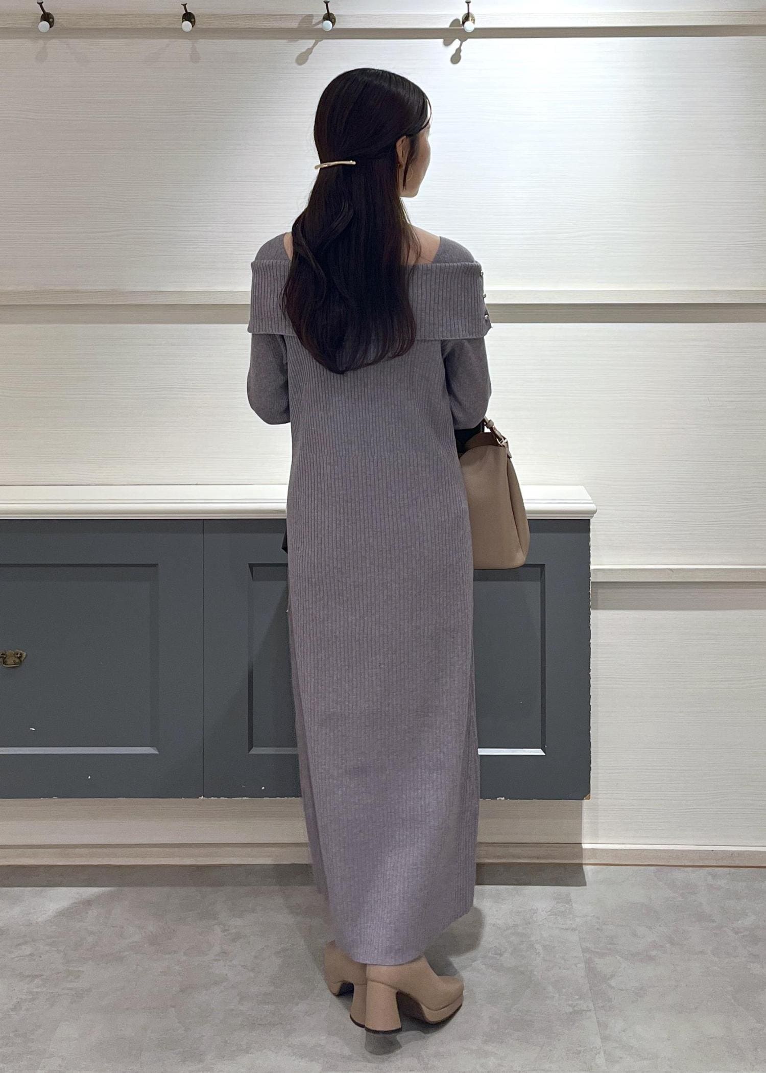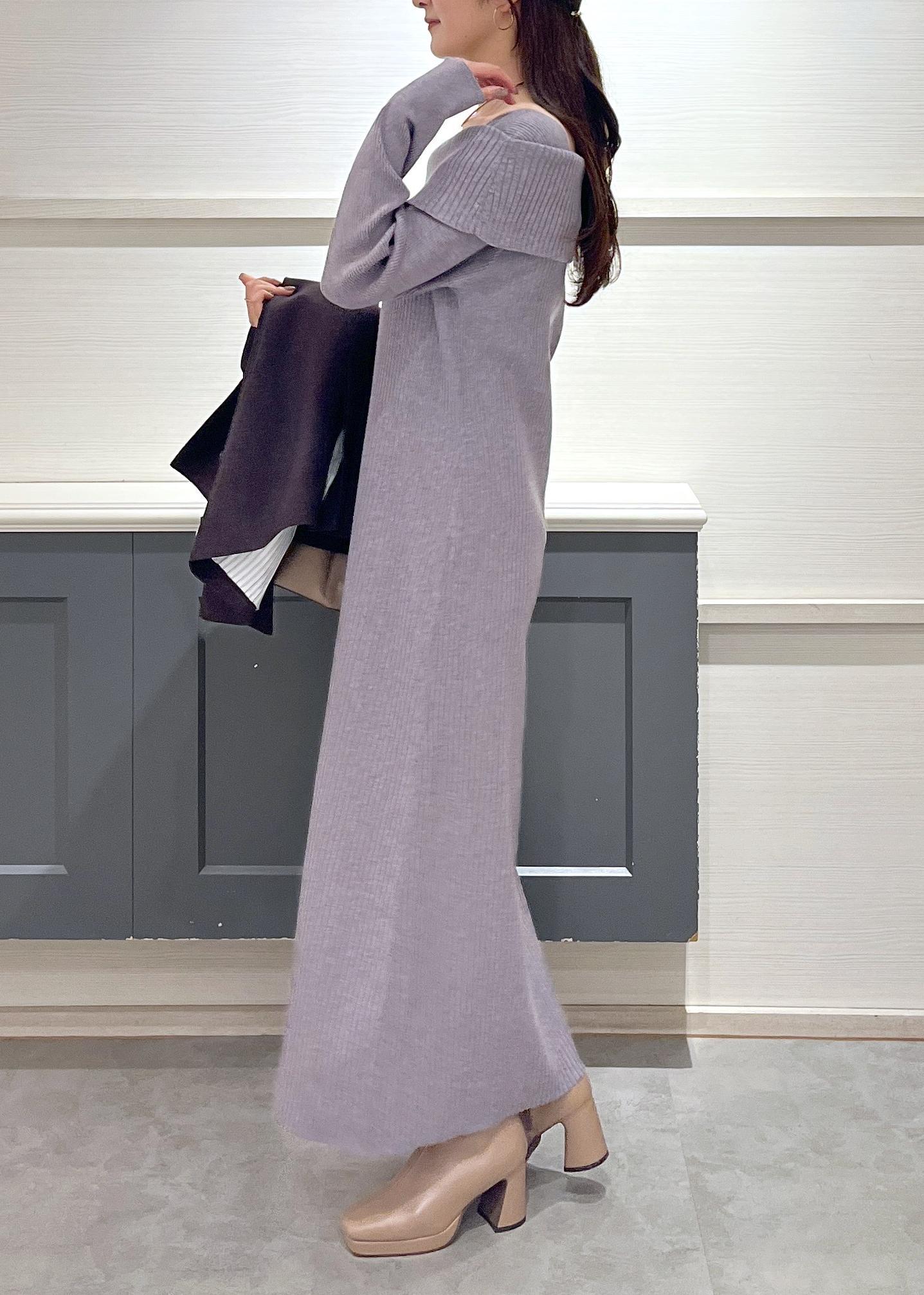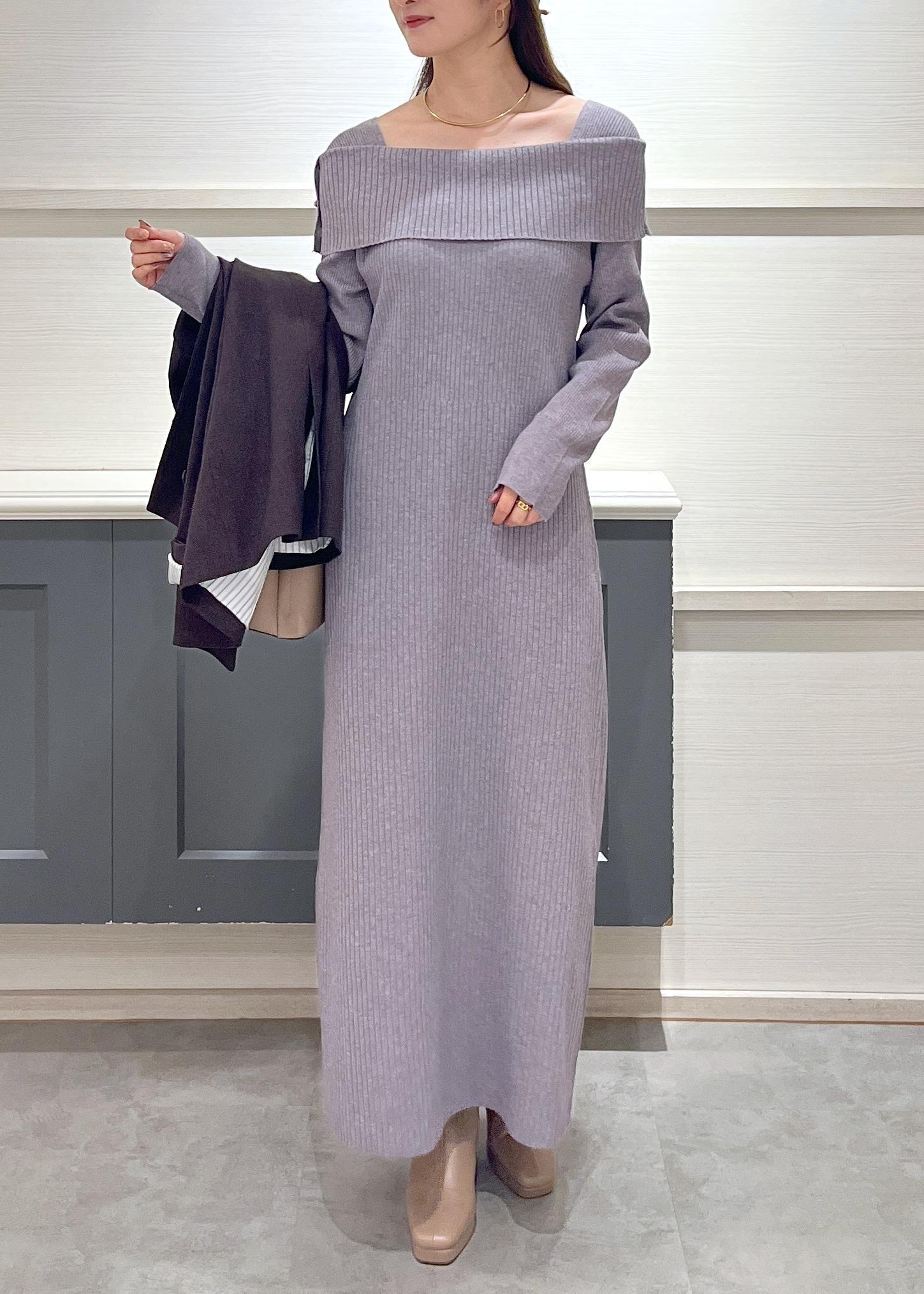 VISアシメオフショルリブニット美シルエットワンピース/着丈が選べるグレー / F¥8,899レビュー156cmで足首にかかるくらいの丈感でした。