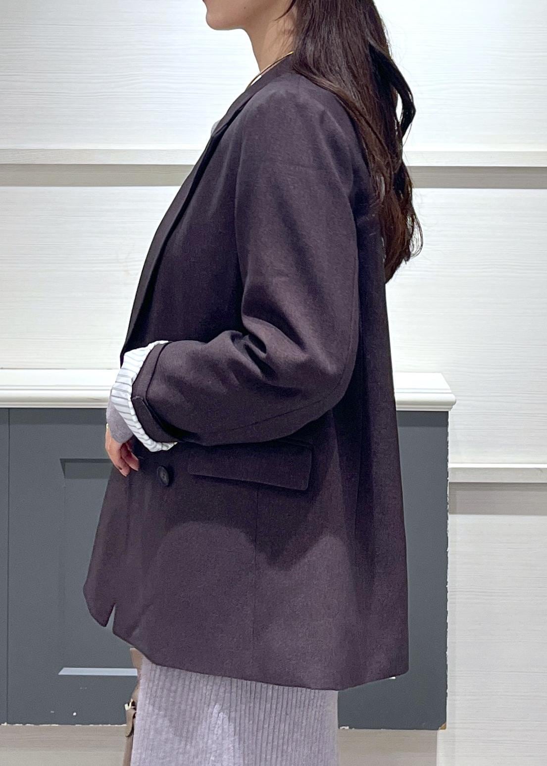 VIS【美easy】ウーリッシュダブルブレストテーラードジャケット【セットアップ対応/洗える】ダークブラウン / M¥8,899レビュー156cmでヒップがしっかり隠れる丈感でした。