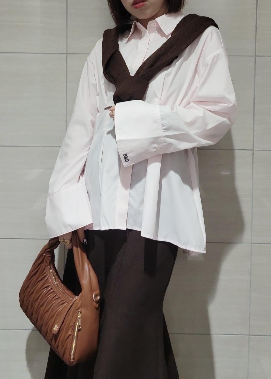 VIS【POLOBCS】VIS別注ウエストタックフレアシャツピンク / F¥6,930レビューウエストは絞りすぎていなくボディラインを拾いすぎないデザインです!