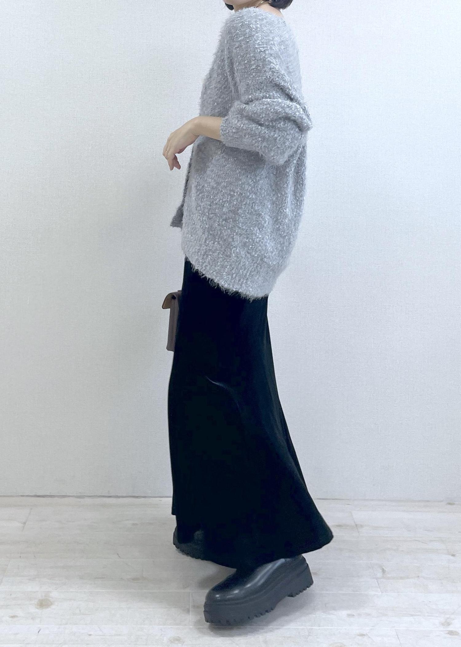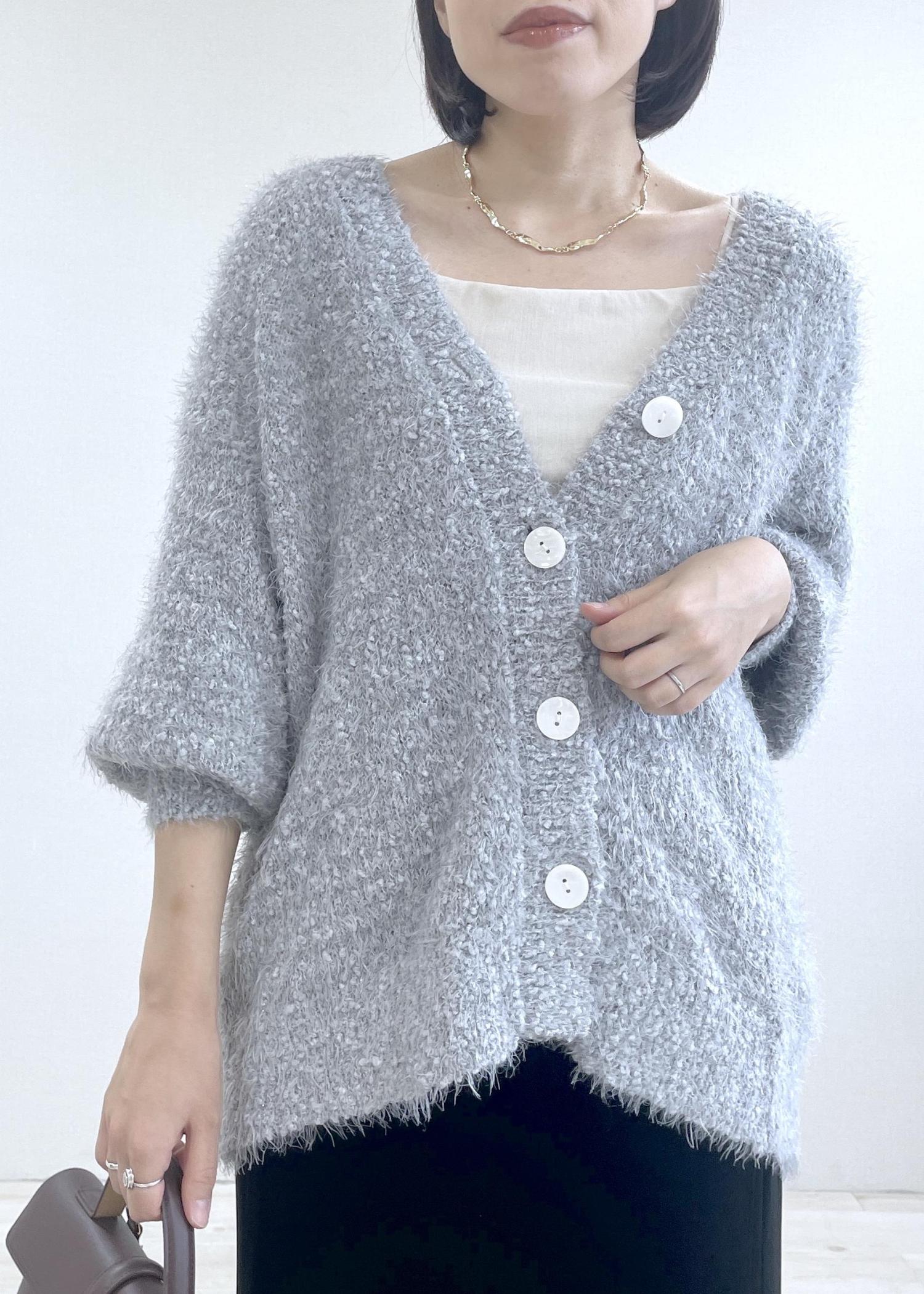VISポップコーンヤーンラメフェザーニットカーディガン/WEB限定FSサイズライトグレー / F¥5,271レビュー全体的にゆるっとしており、着丈もお尻がすっぽり隠れる長めの丈です。