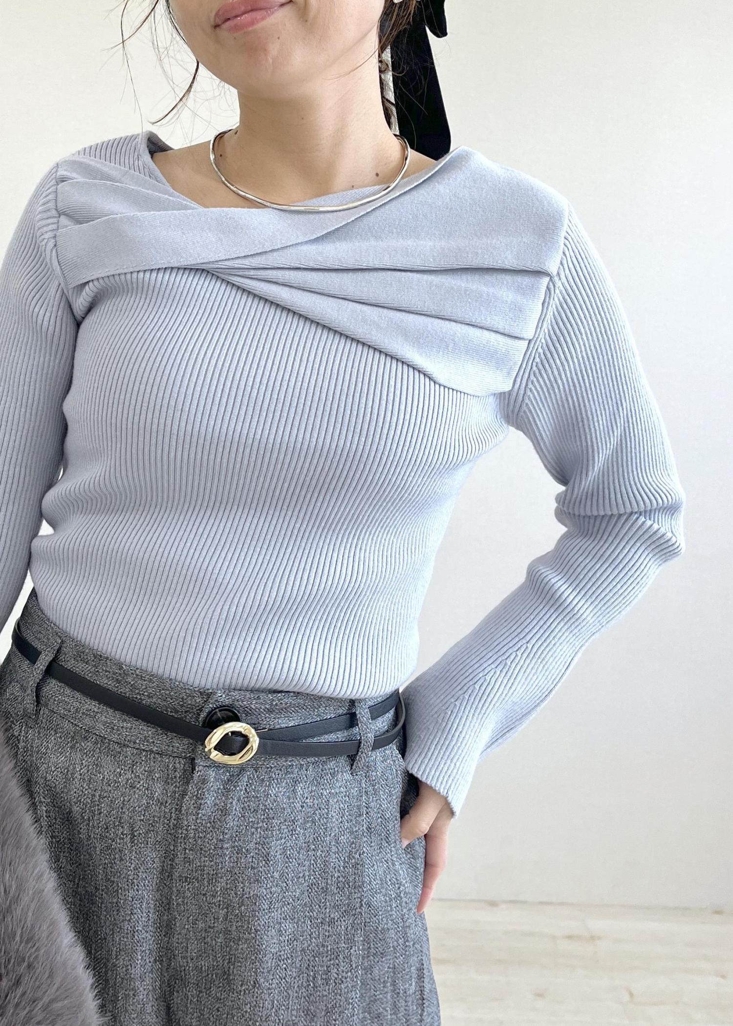 アシメねじれデザインリブニット