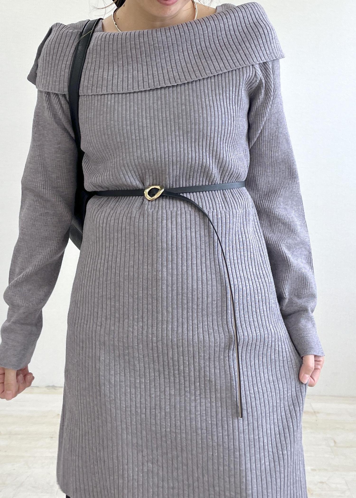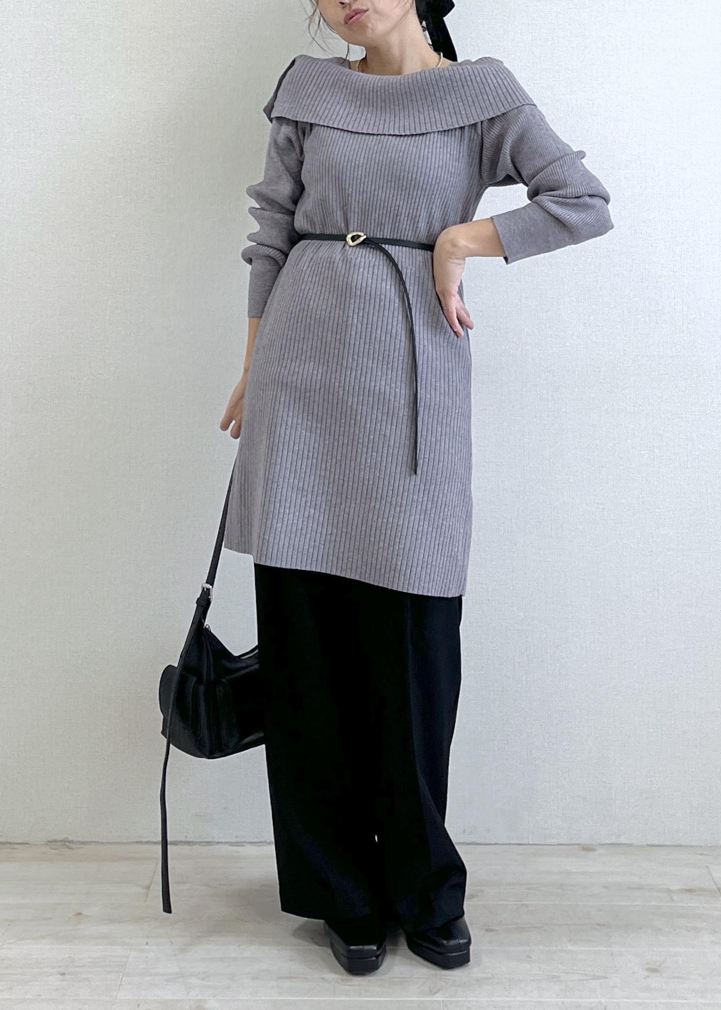 アシメオフショルリブニット美シルエットワンピース/着丈が選べる
