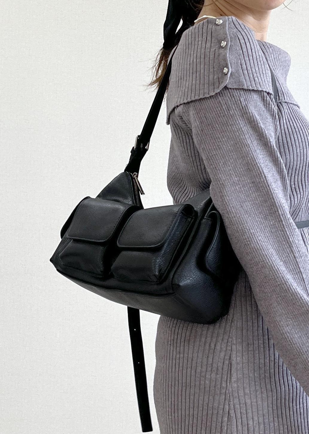 【2WAY】ビンテージ合皮クアトロポケットショルダーバッグ