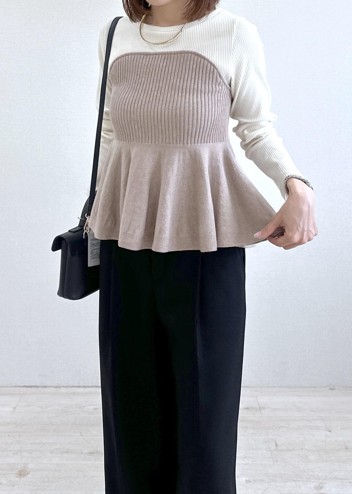 VISペプラムニットドッキングプルオーバーベージュ系 / F¥5,929レビュー1枚で様になるペプラムデザインのトップス。