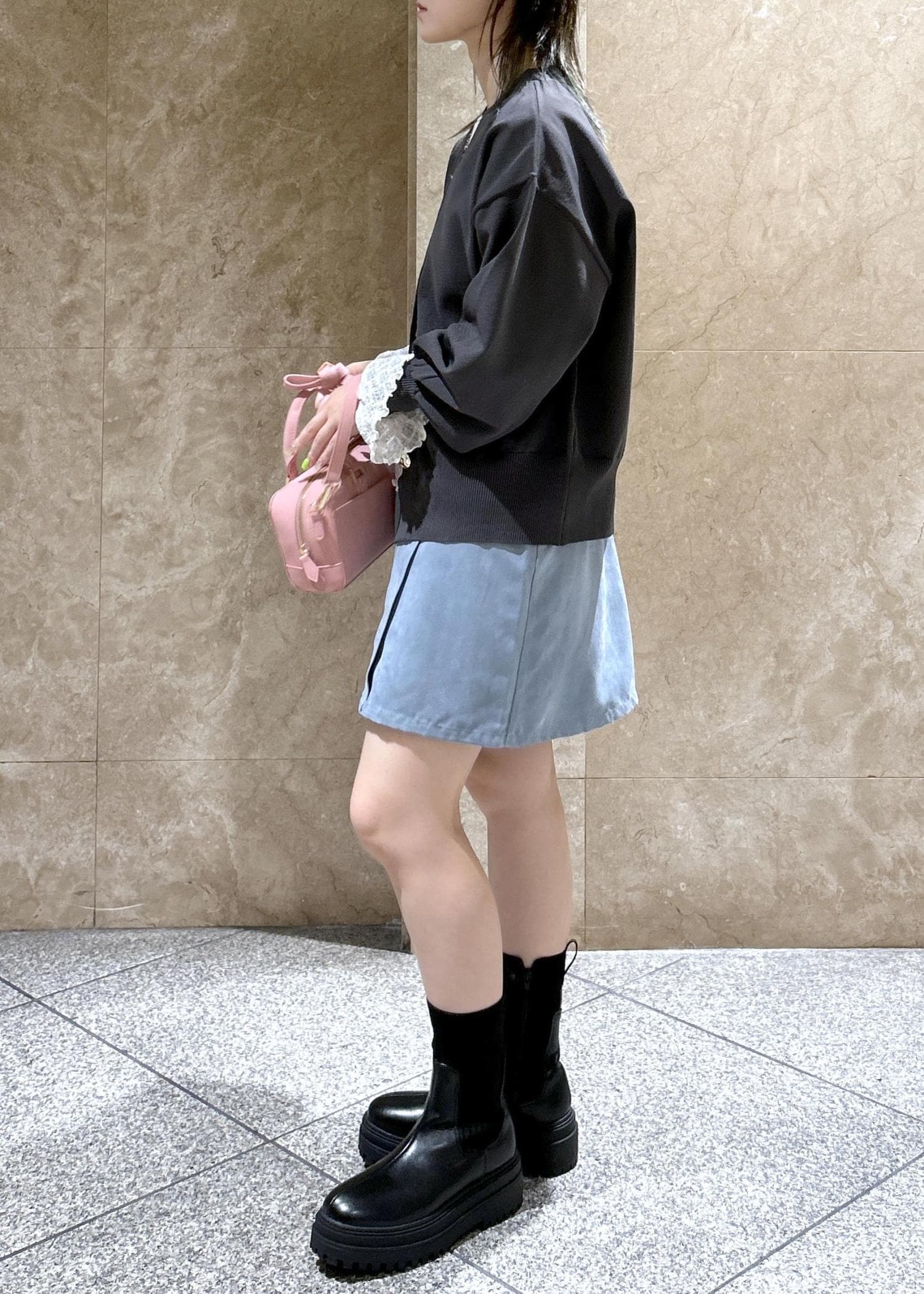 厚底具合は高すぎず低すぎずで、足を長く見せてくれます!ショートボトムスとの相性◎