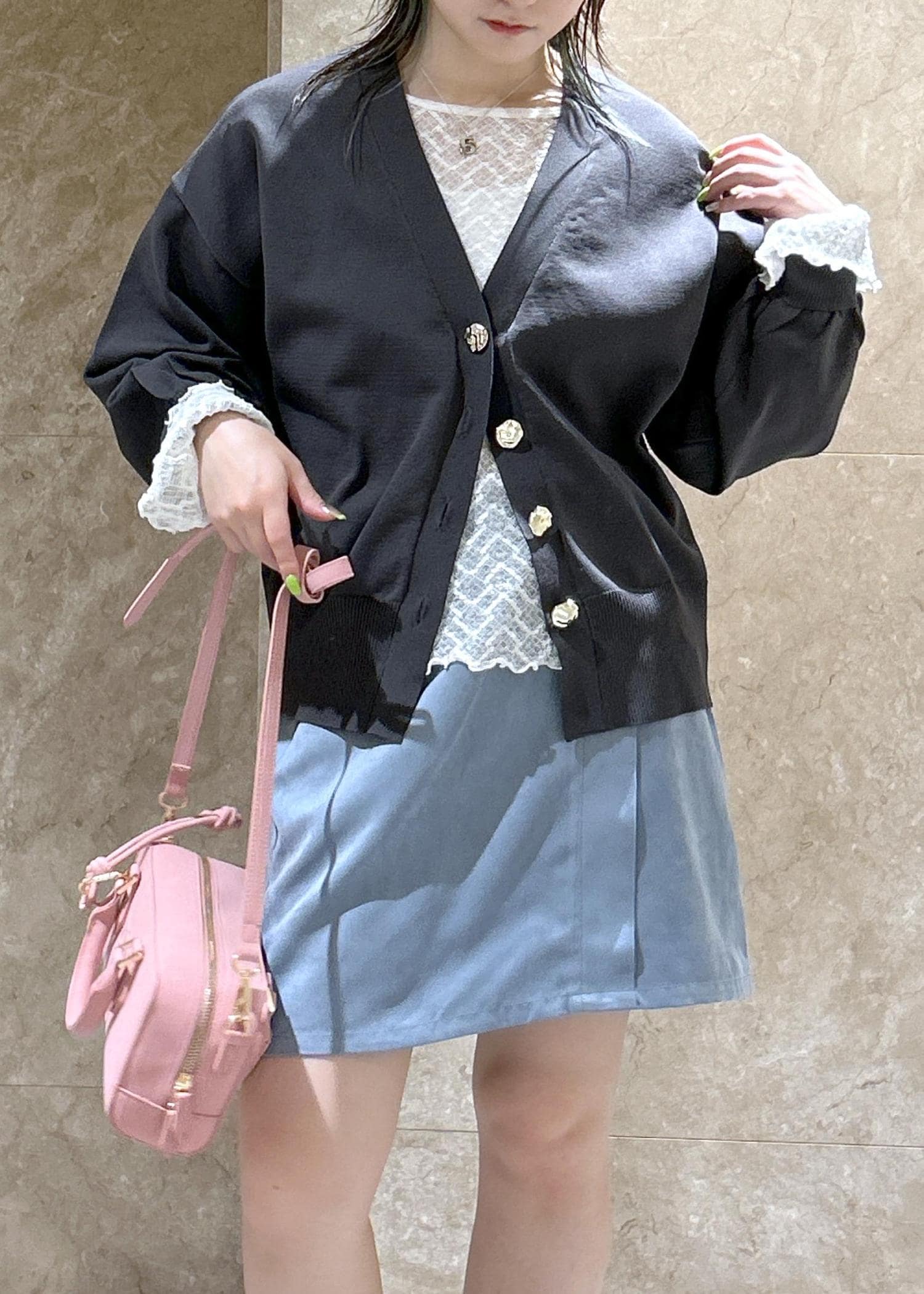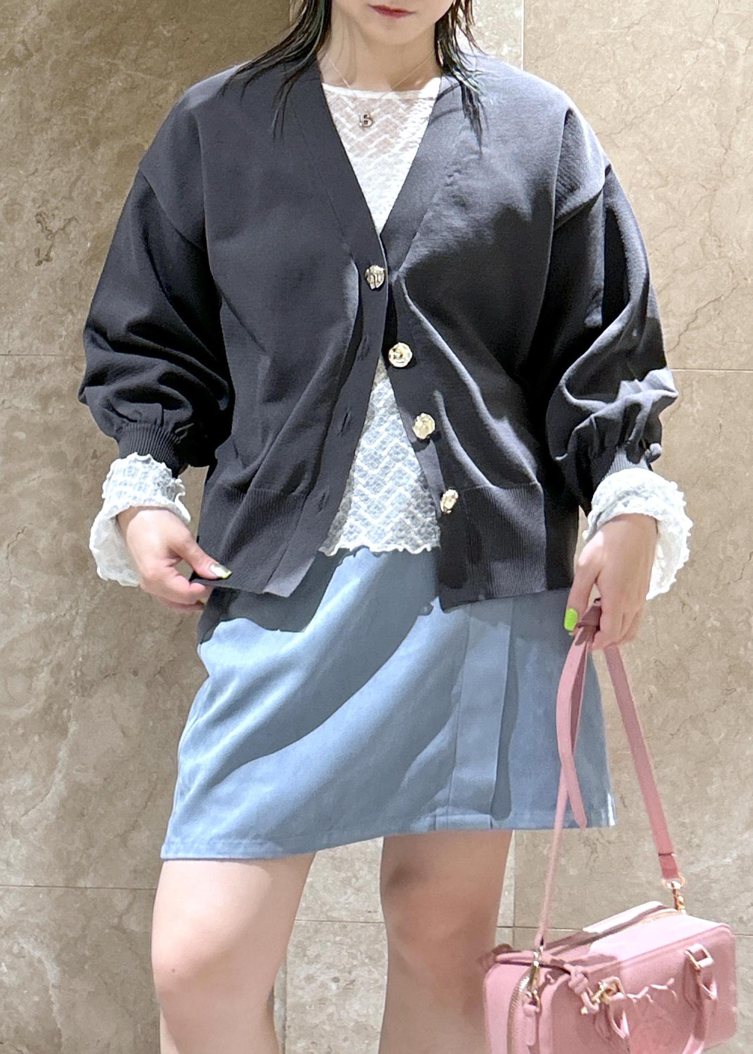 VIS【WEB限定】メタル釦オーバーサイズカーディガンチャコール / F¥4,612レビュー腕周りがフワッとしているシルエットと大きめボタンがかわいいカーディガンです!