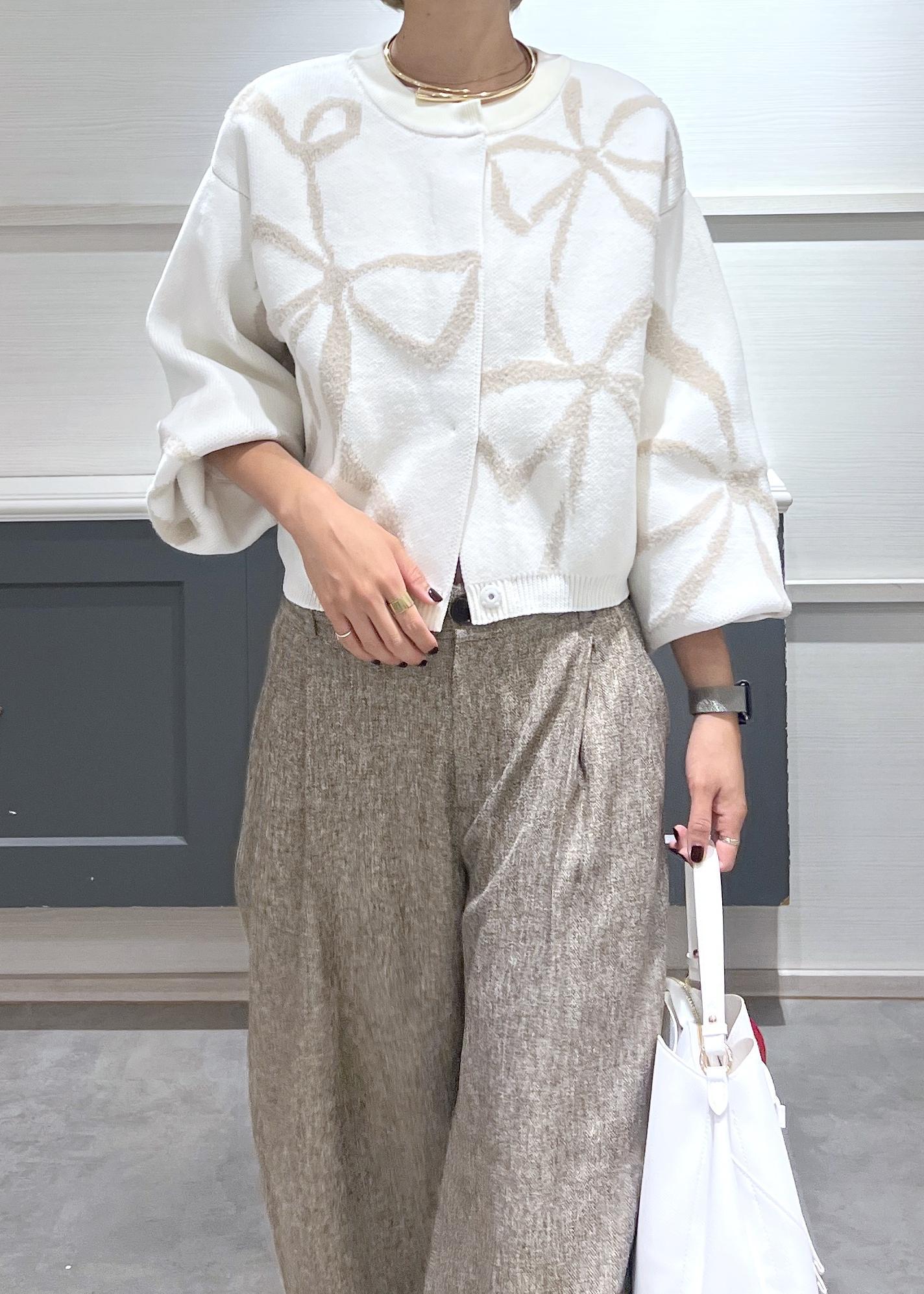 VISリボンモチーフジャガードカーディガン/イージーケアキナリ / F¥6,919レビュー166cm/Fサイズ着用