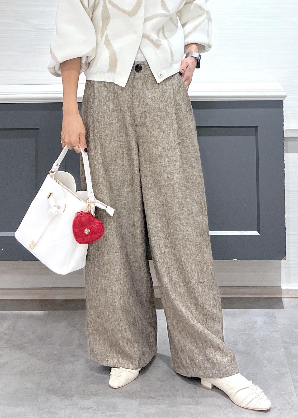 ツータックでゆとりあるサイズ感ですが内側にボタン式のアジャスターが付いているので、サイズ調節可能です。 -
