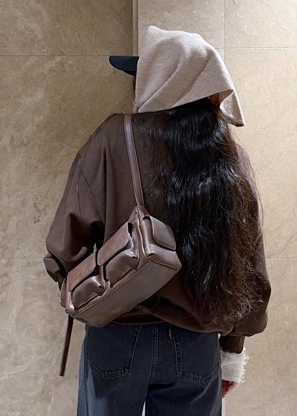 【2WAY】ビンテージ合皮クアトロポケットショルダーバッグ