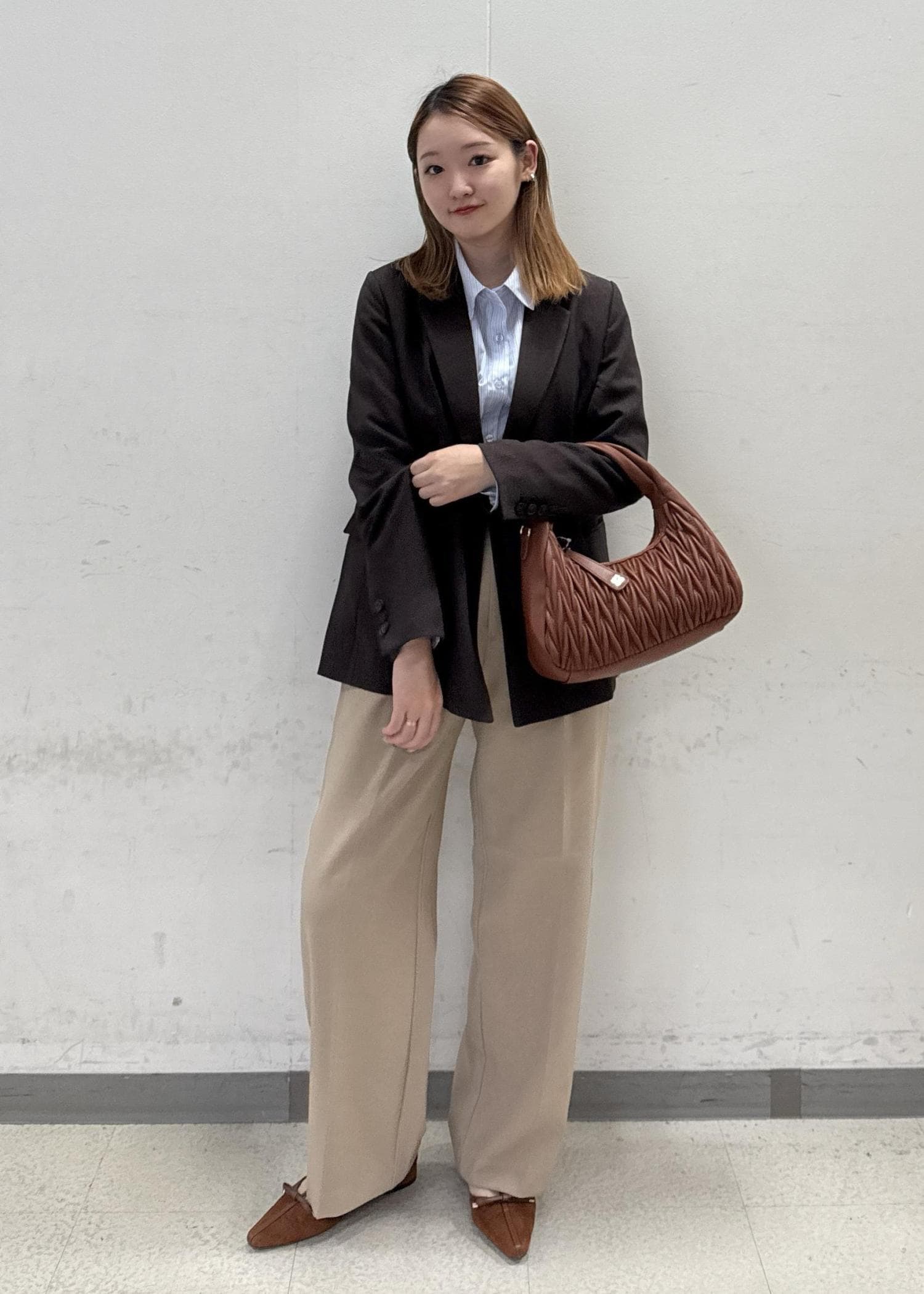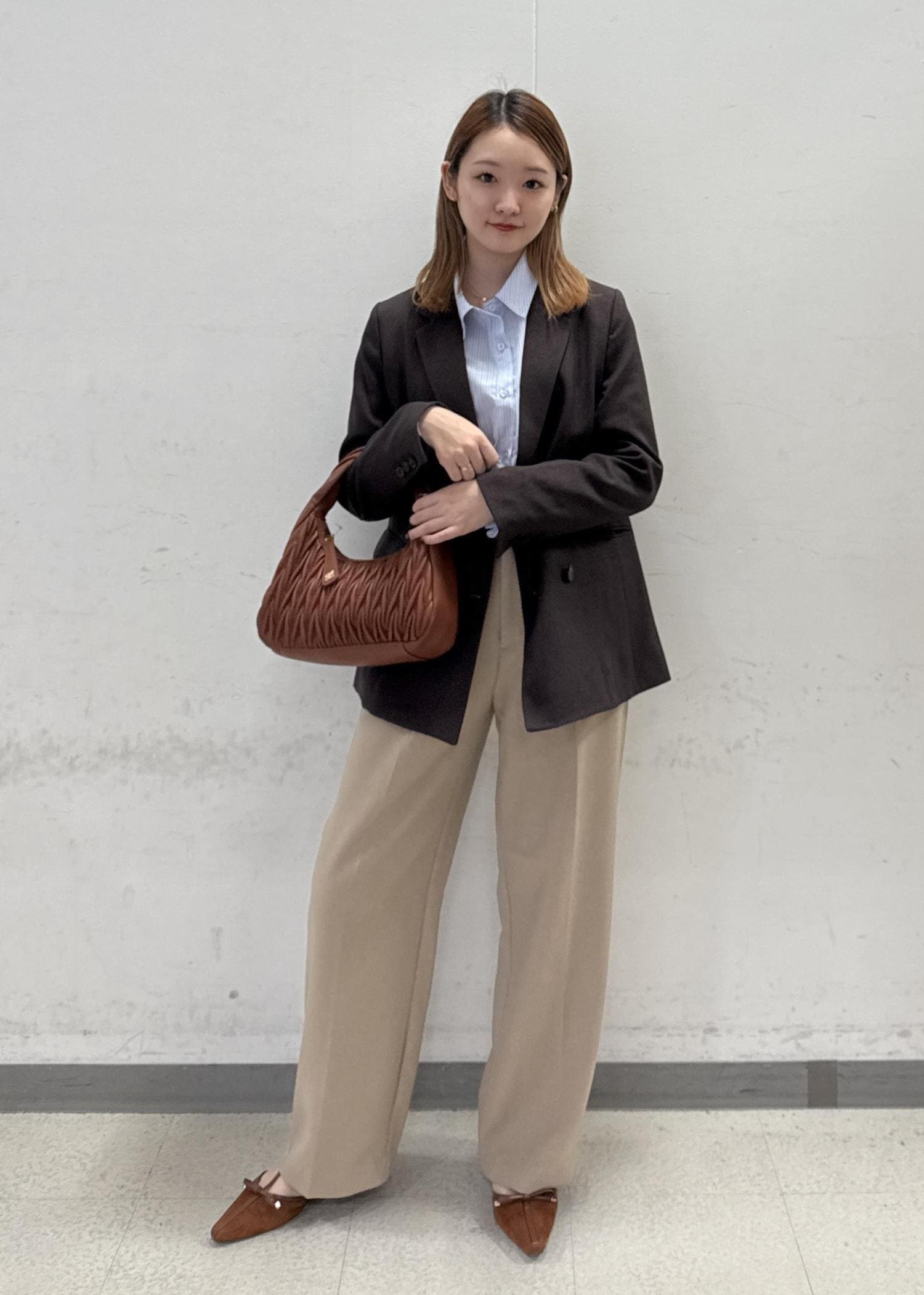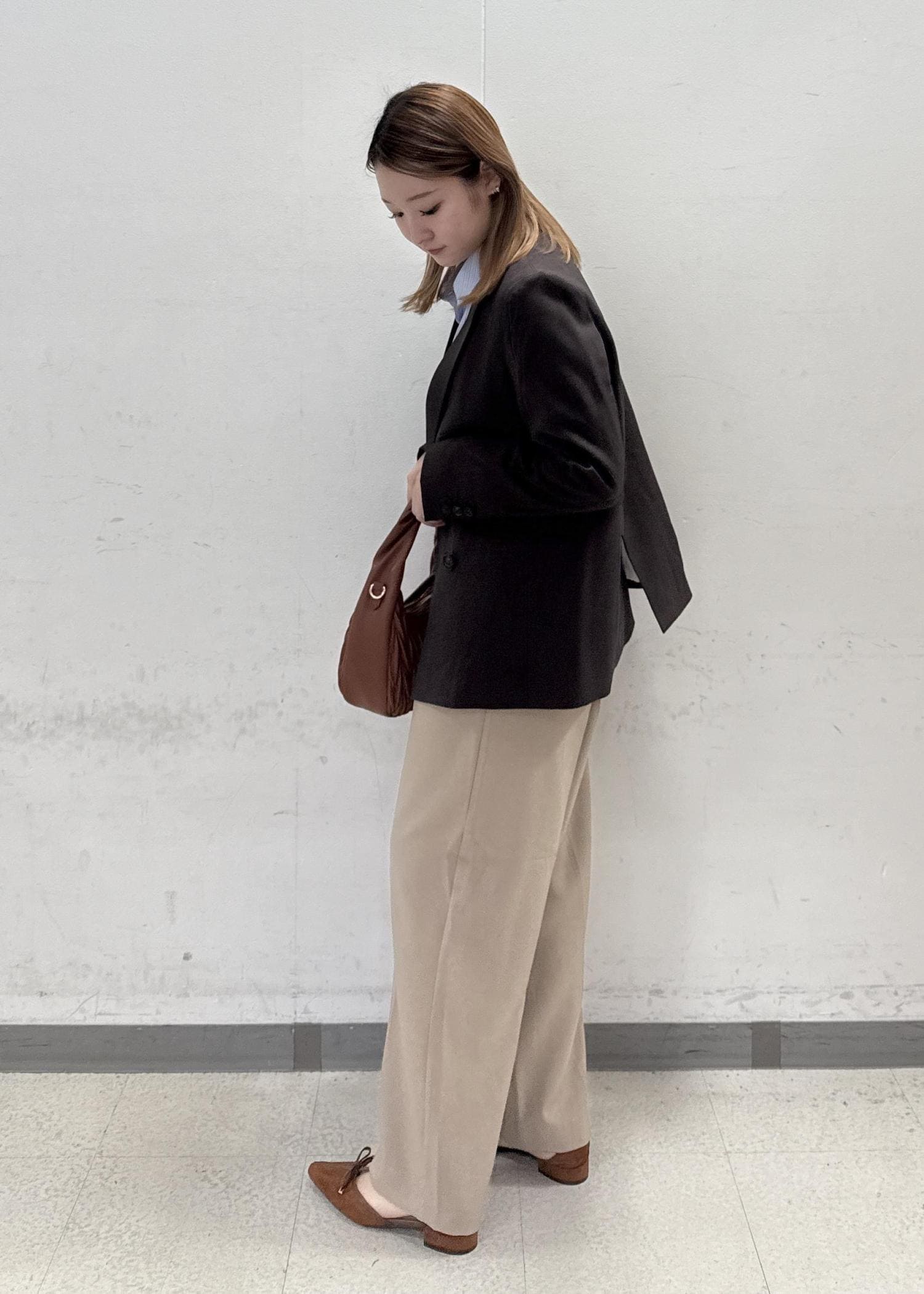 VIS【美easy】ウーリッシュダブルブレストテーラードジャケット【セットアップ対応/洗える】ベージュ / S¥8,899レビュー158cmの身長で、お尻が隠れるくらいの身丈でした。