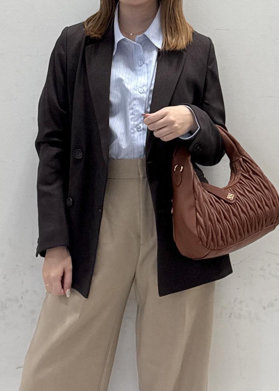 VIS【2WAY】ねじりハンドルキルティングバッグブラウン / F¥7,909レビュー側面サイドにポケットがついているので、出し入れが多い携帯などを入れられます!