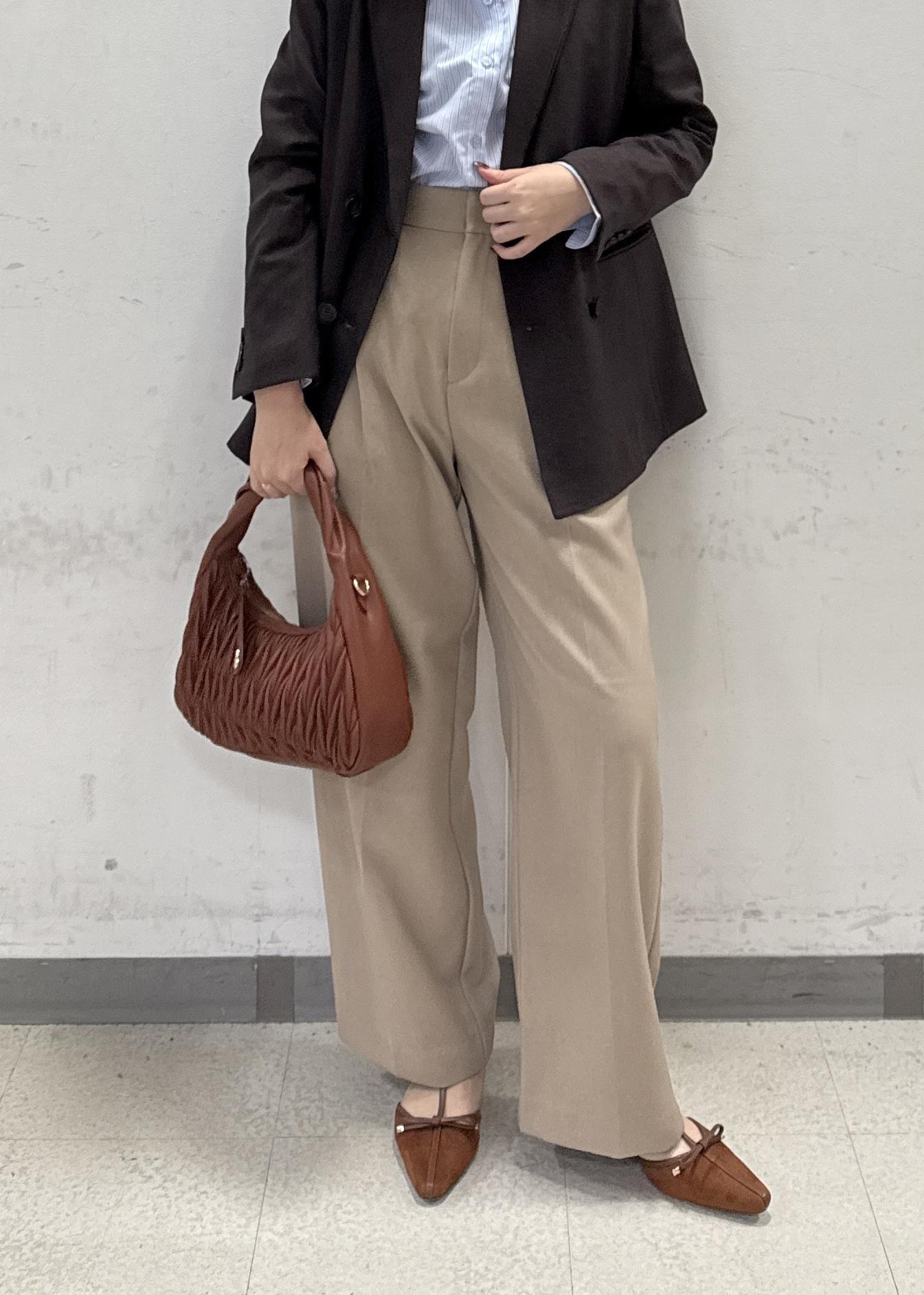 VIS【美easy】ウーリッシュワンタックワイドパンツ【セットアップ対応/洗える】ベージュ / S¥6,589レビュー158cmの身長で、足の甲につくくらいの丈感です!