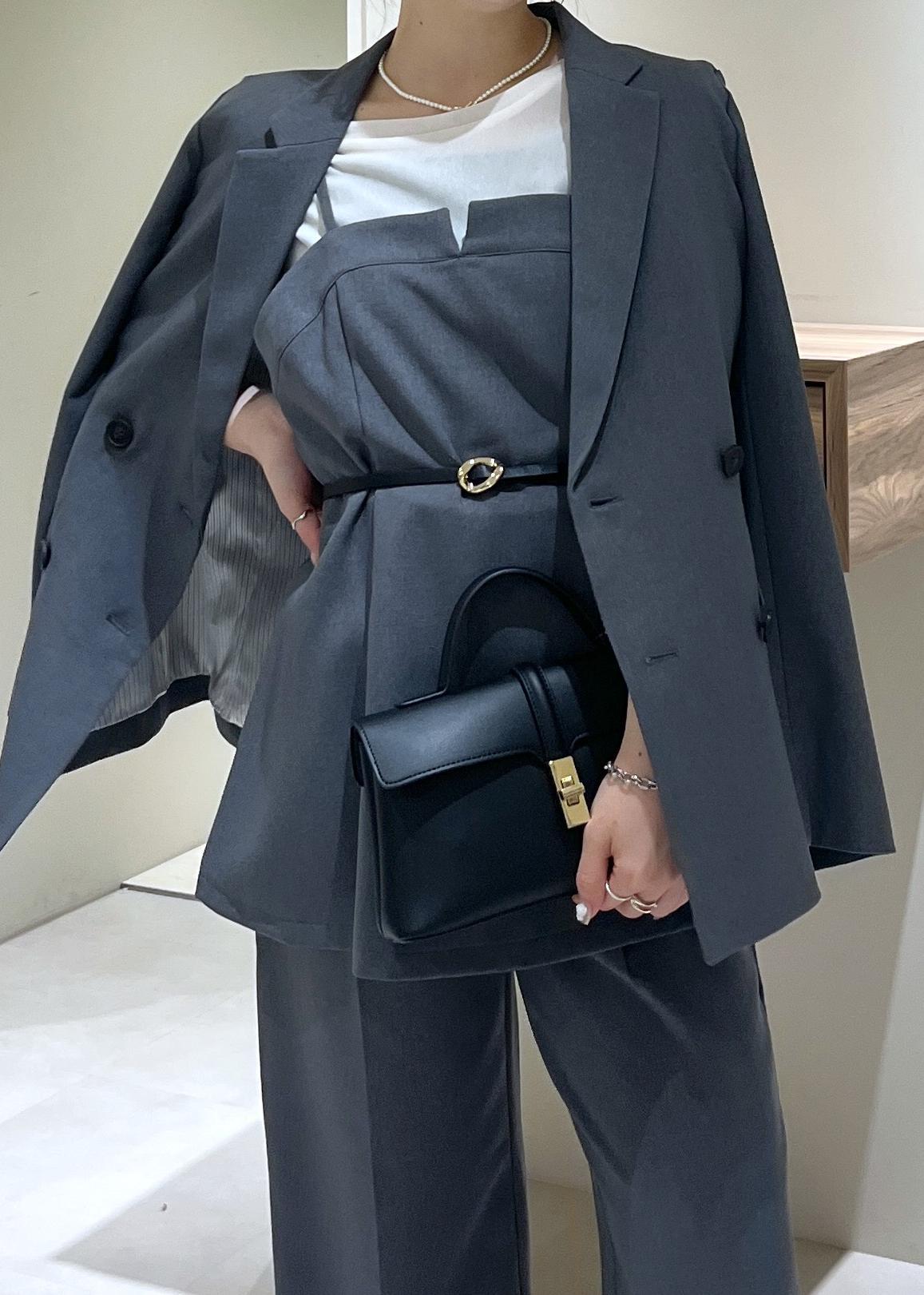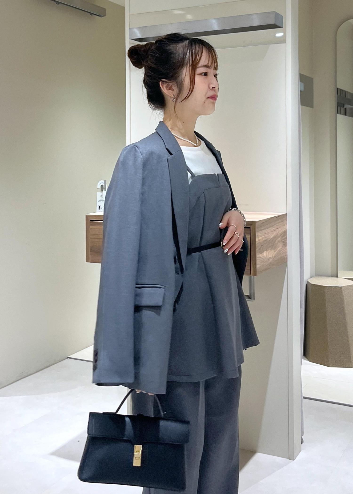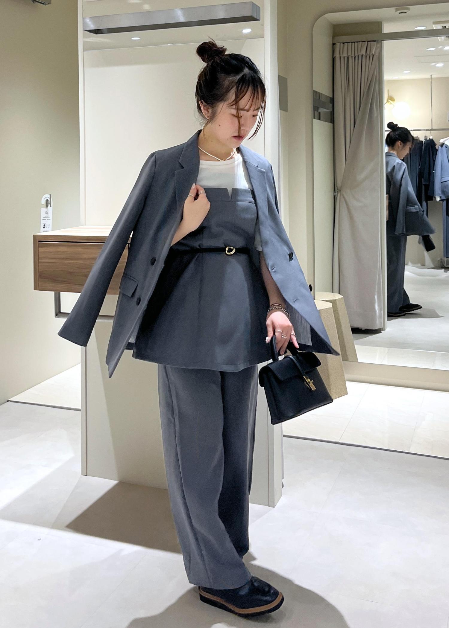 お仕事でも使いやすいカラーのグレーのセットアップです!