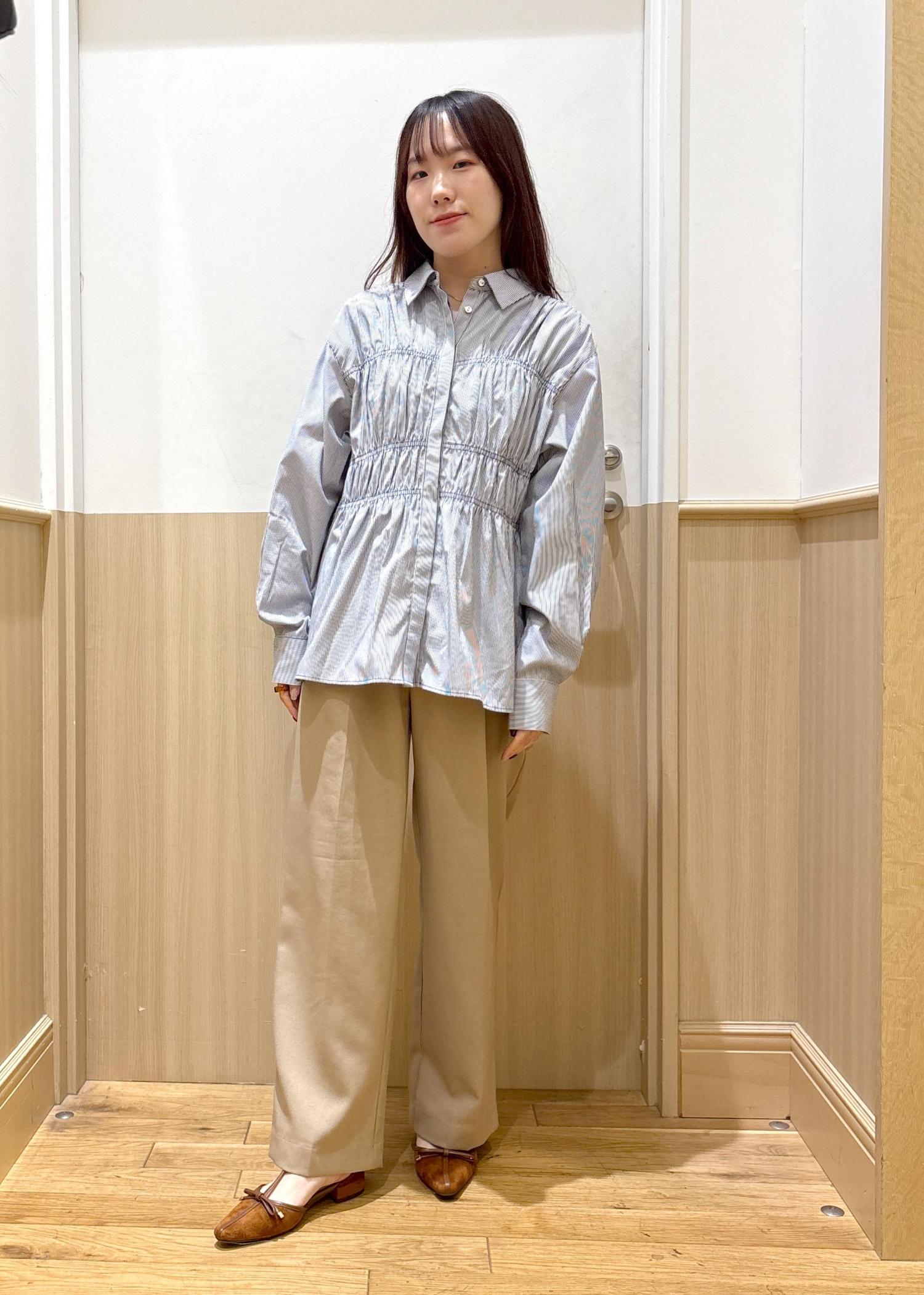 VISシャーリングデザインシャツネイビー系 / F¥5,489レビューシャーリングデザインがウエストをきゅっと見せてくれるので、ワイドパンツ合わせでも重たく見えません◎