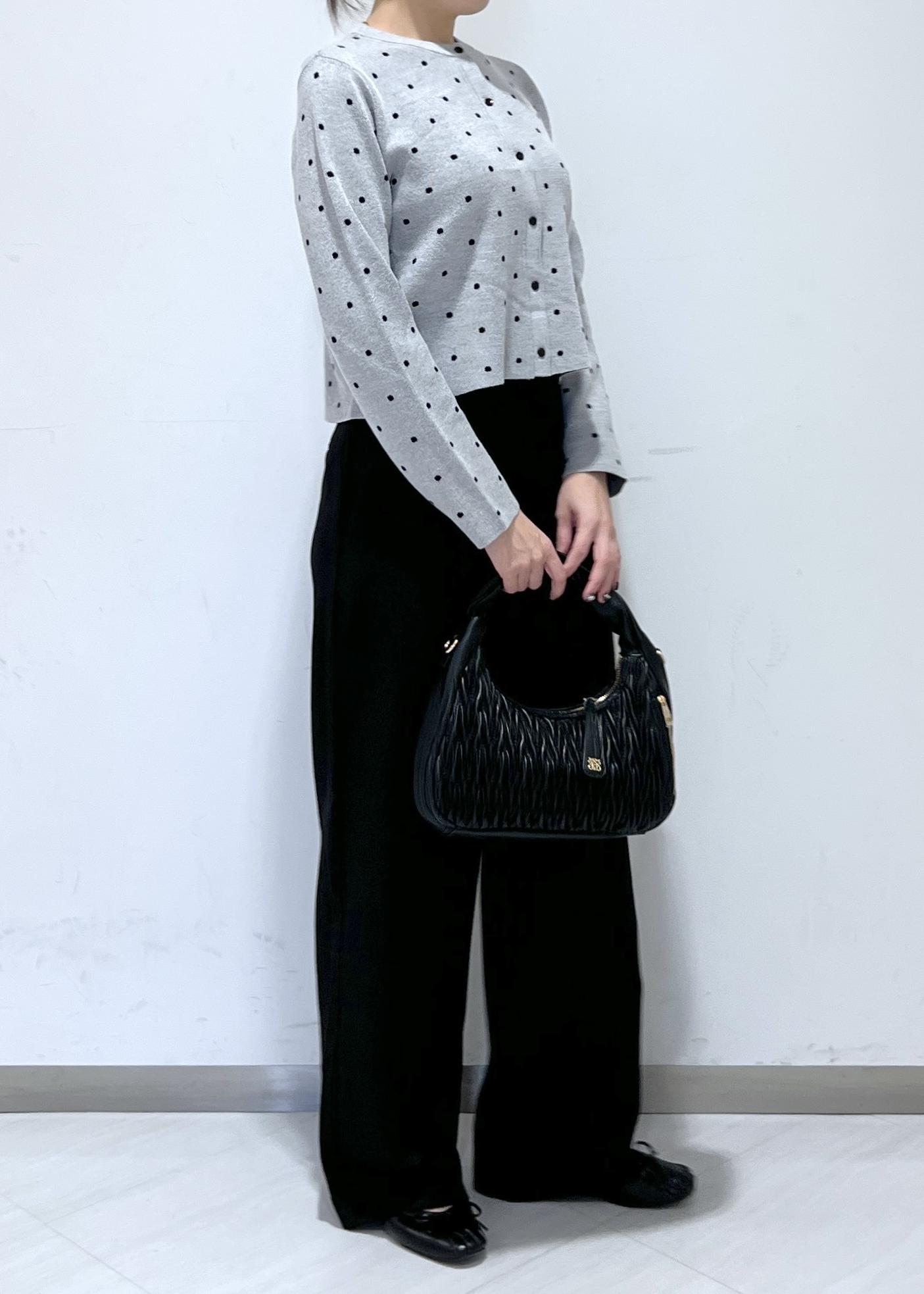 VISドットジャガードカーディガングレー系 / F¥5,929レビュー丈は長過ぎず、程よくゆとりがあり、生地感はもちもちニットなので着心地抜群です!