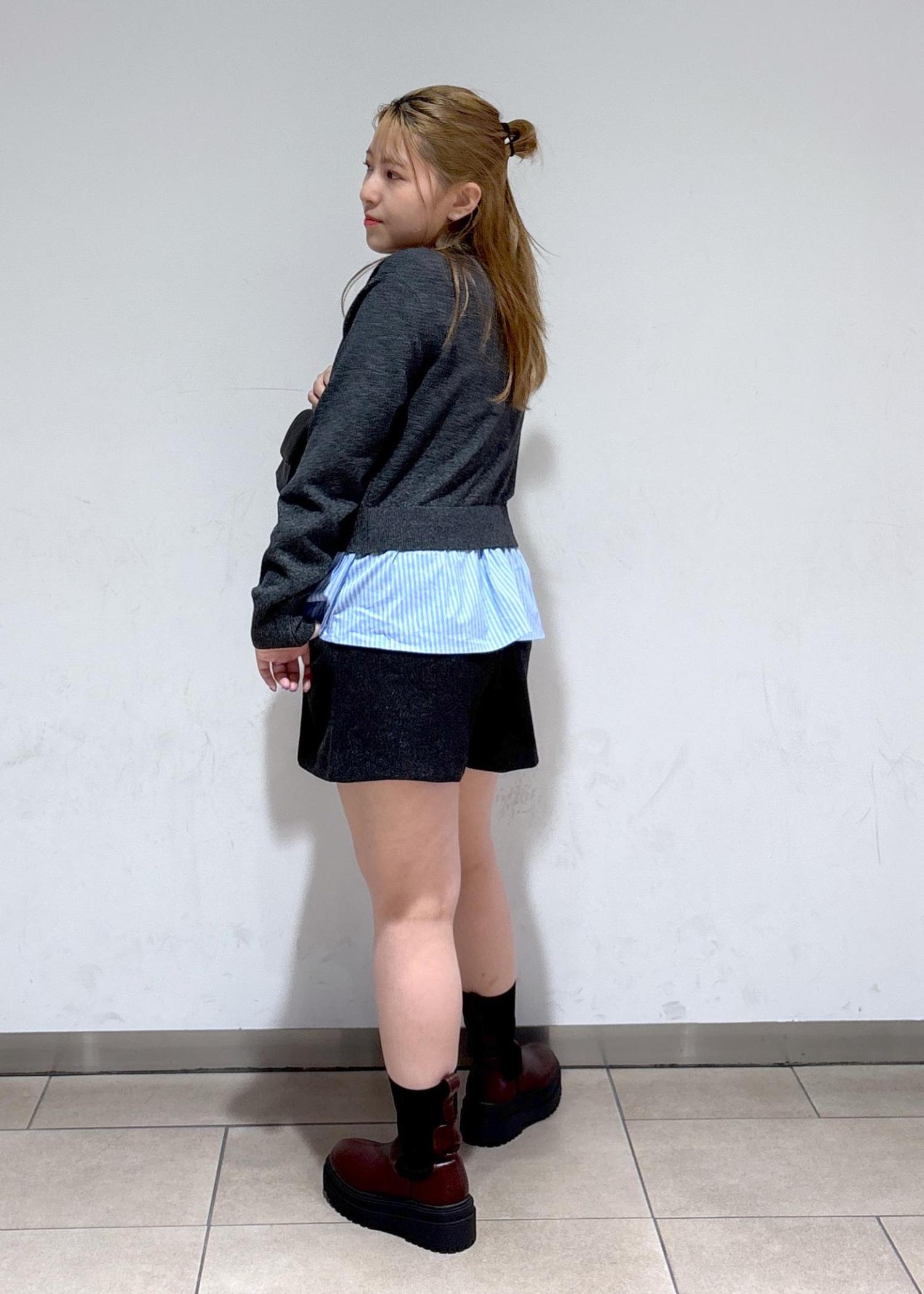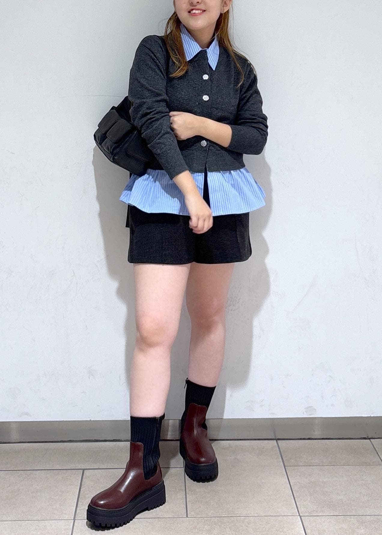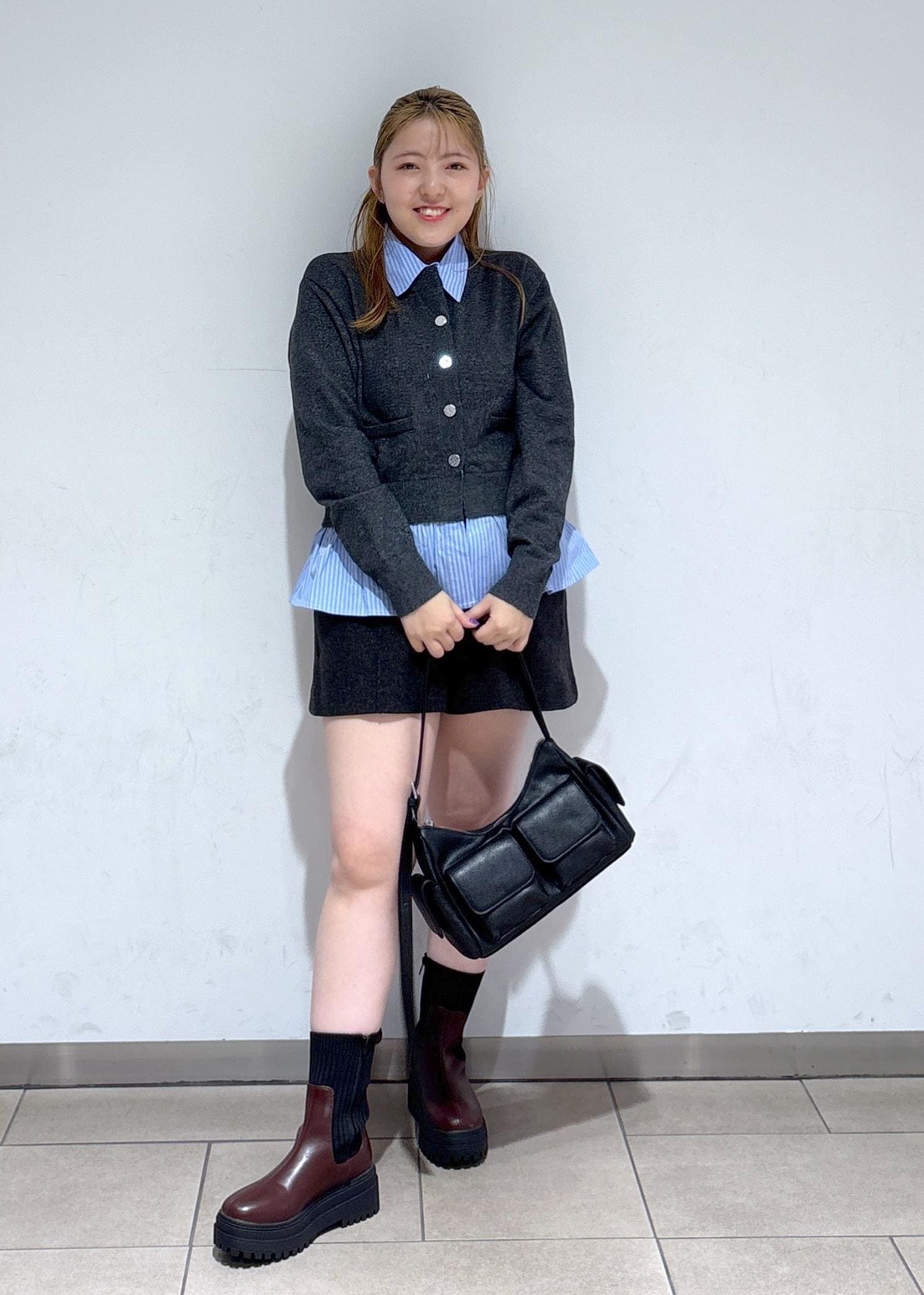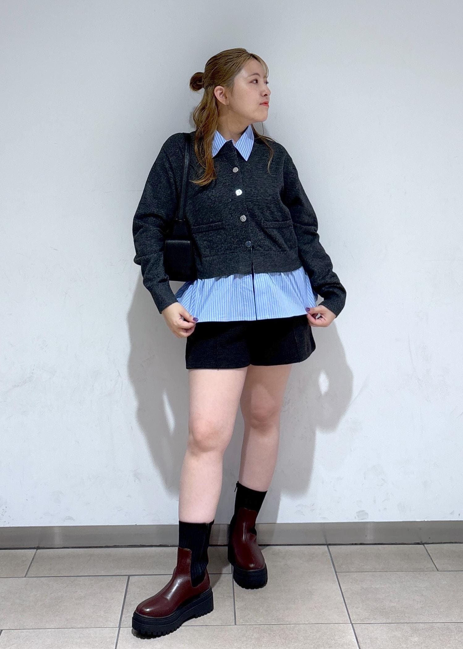 カーディガン部分がウエスト高めに見せてくれるデザインなので全体の着丈が長めでもスタイルアップして見えます!