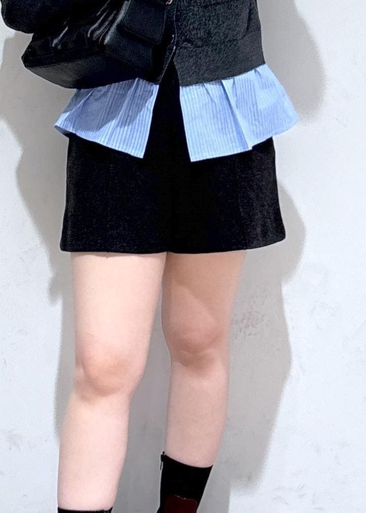 ウエストベルトで調節できるので、トップスのインとアウトどちらでも着やすいです! -