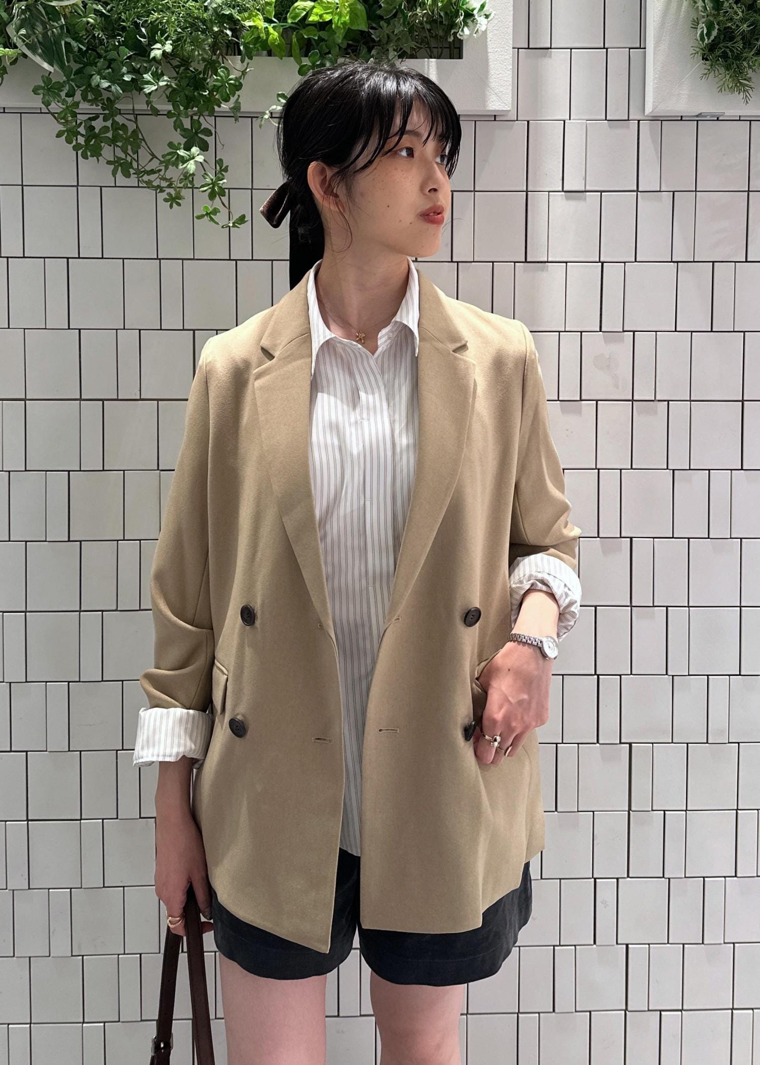 VIS【美easy】ウーリッシュダブルブレストテーラードジャケット【セットアップ対応/洗える】ベージュ / M¥8,899レビュー160cm、Mサイズ着用