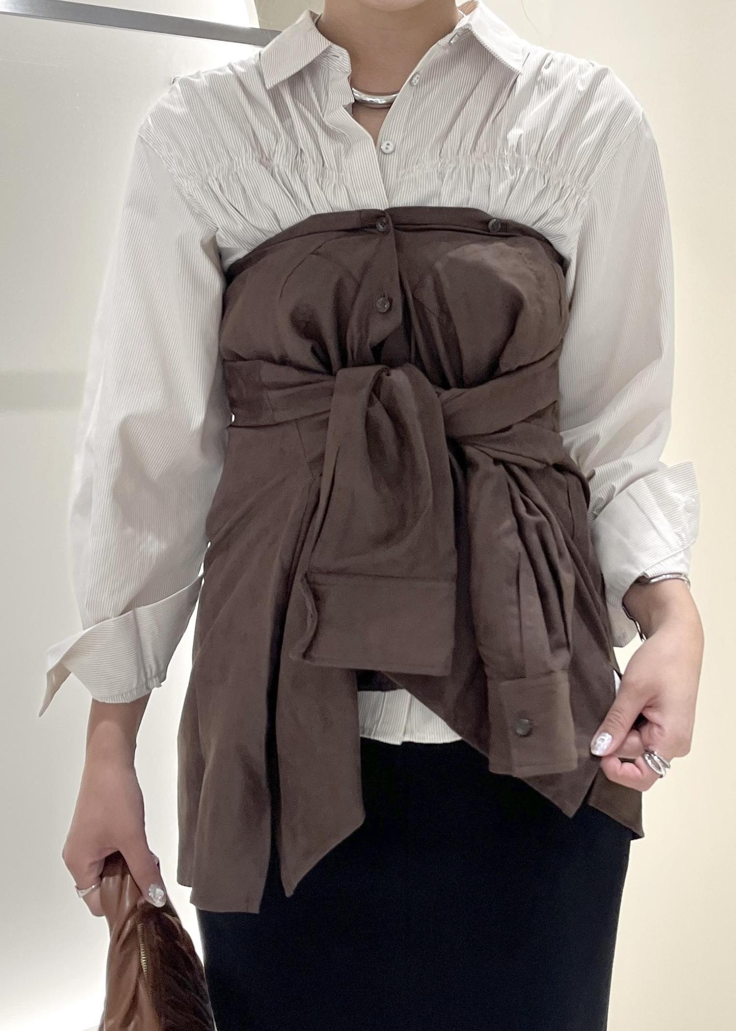 VISシャーリングデザインシャツベージュ系 / F¥5,489レビューシャーリングデザインが1枚でも映える万能シャツ!
