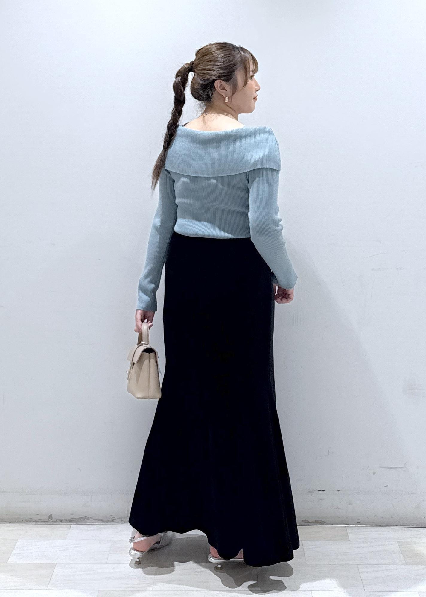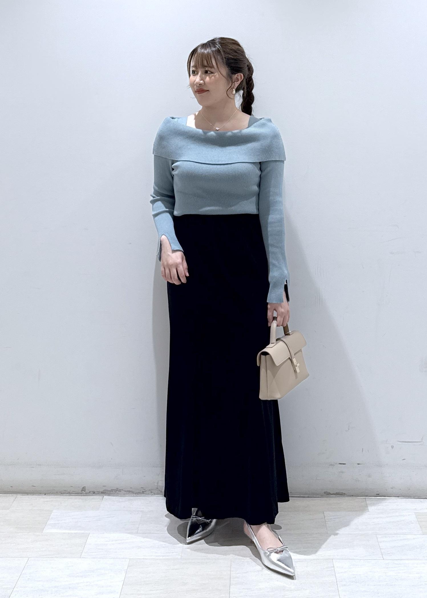 今回は今この時期に使いたい美easyシリーズのジャケットに、長袖のオフショル風ニットトップスと合わせて、綺麗めなコーディネートにしてみました。