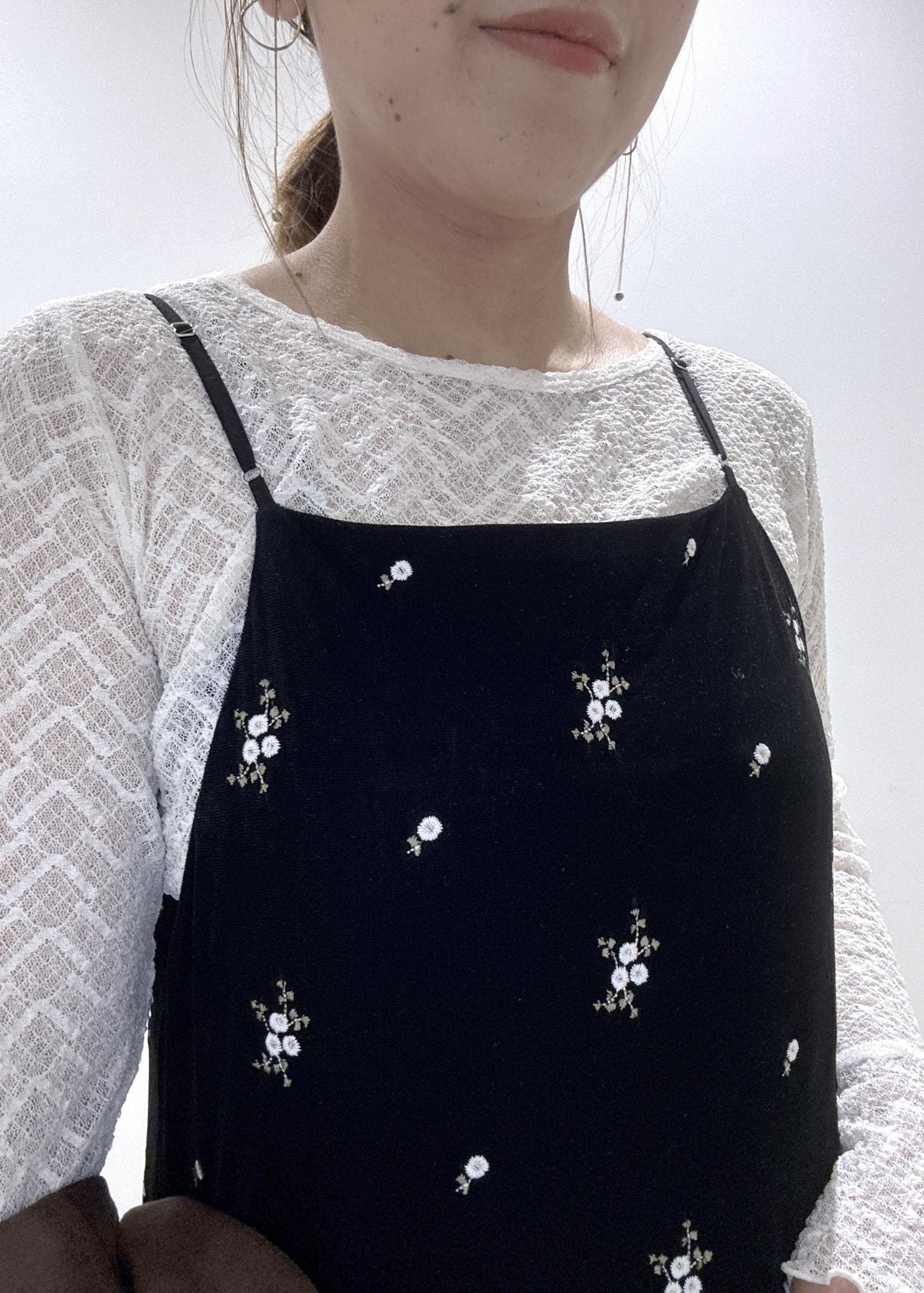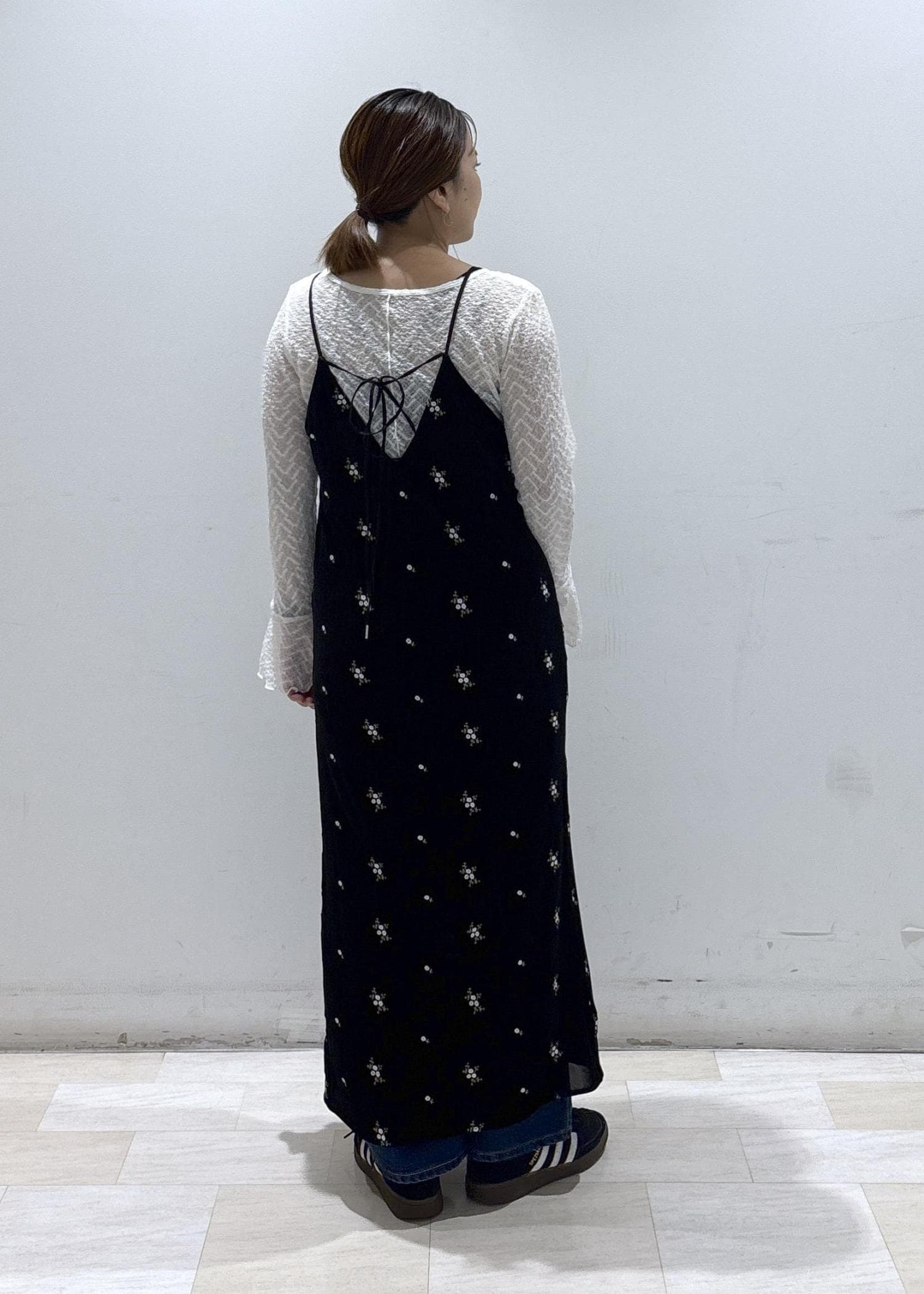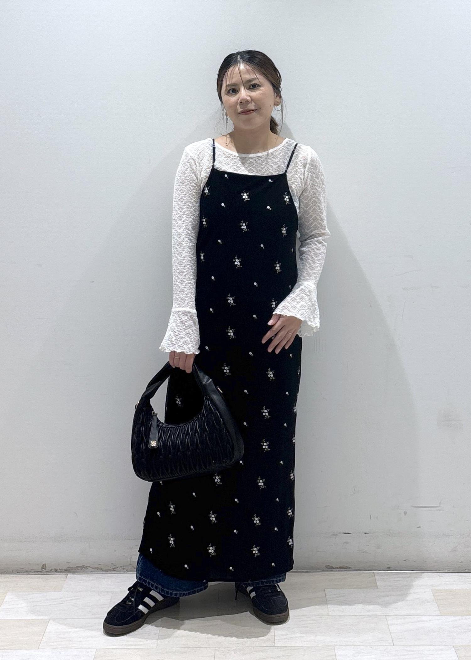 VIS刺繍アソートベロアキャミワンピース/2WAYブラック系 / F¥8,899レビュー身長155cmの私は足首丈の長め丈でした。(アジャスターで調節してます)