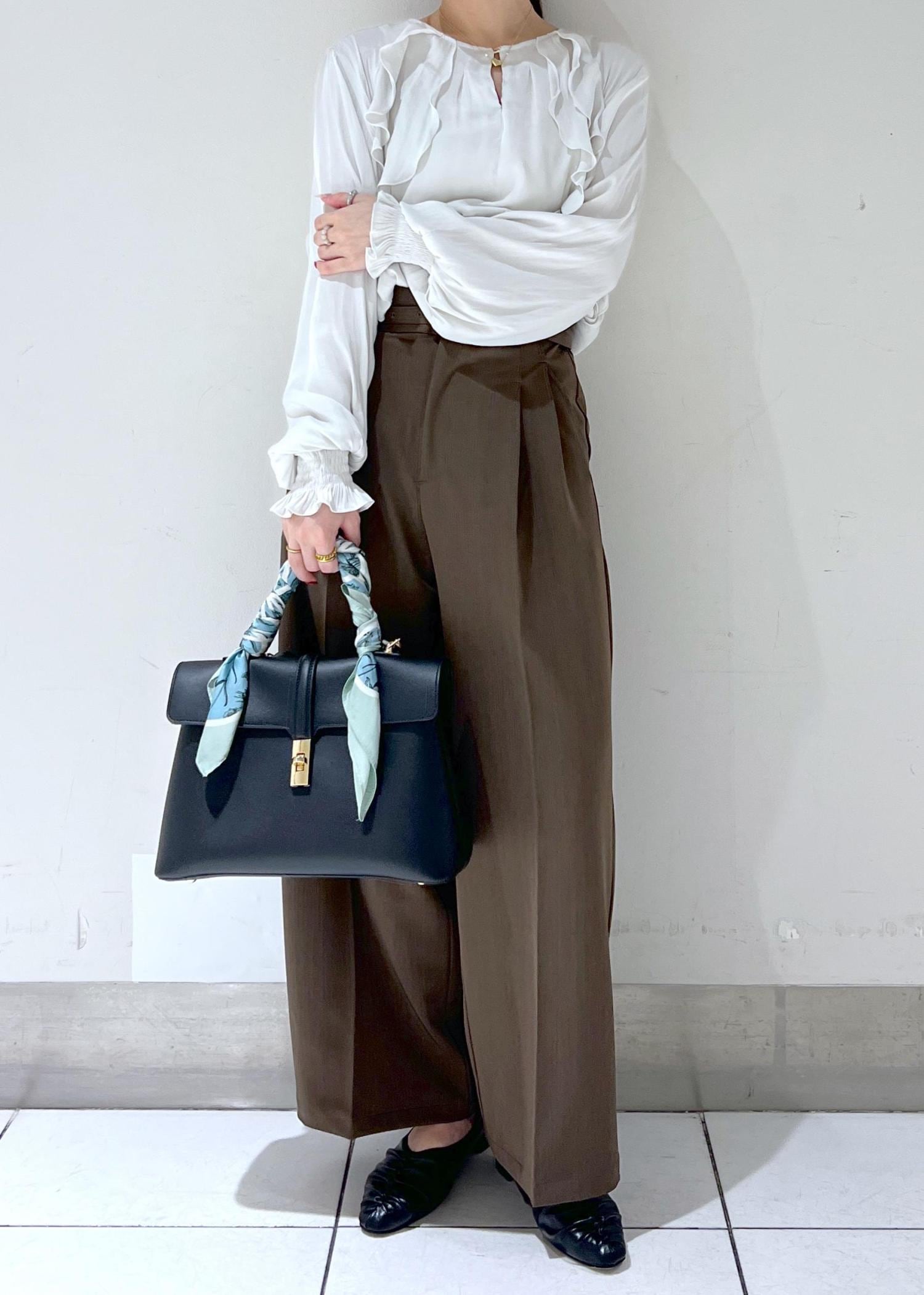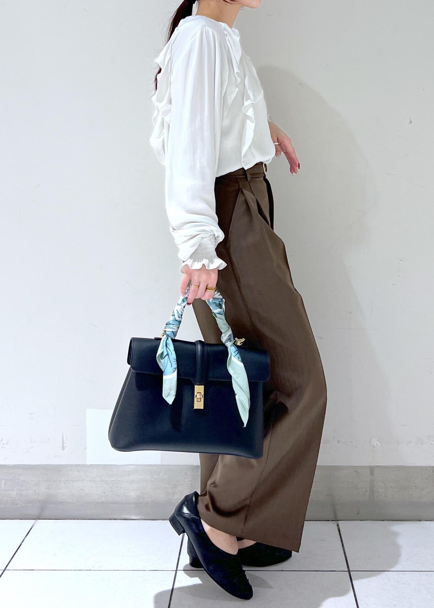 全体的に暖かみのあるお色味でオフィスコーデを組んでみました