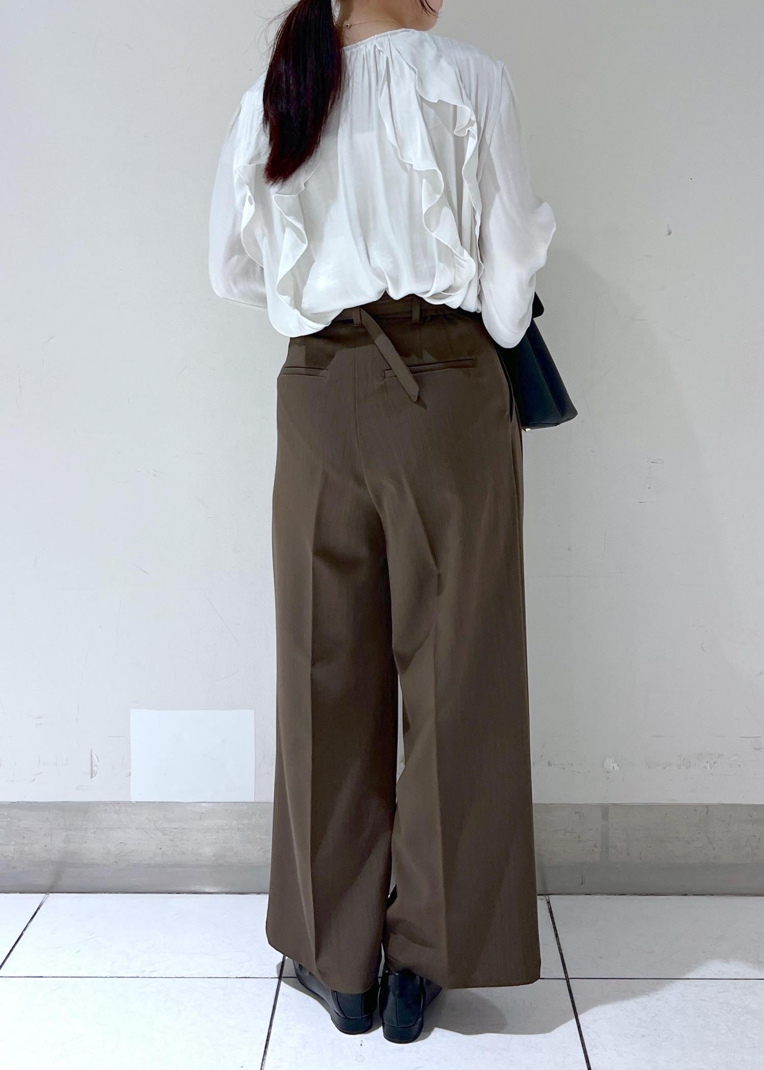 VISベルトディテールタックワイドパンツ/イージーケアブラウン / SS¥6,589レビュー152cmでSサイズ着用です!