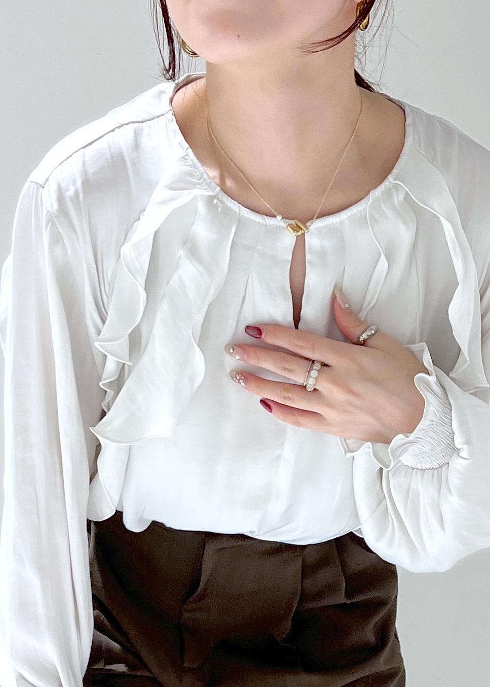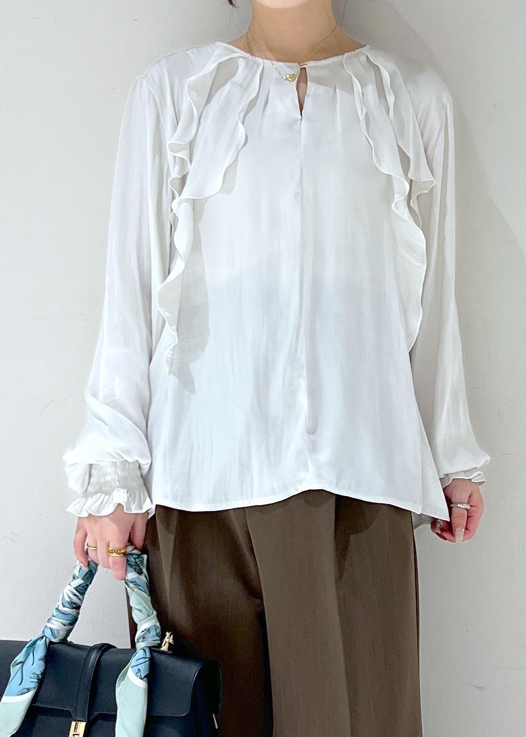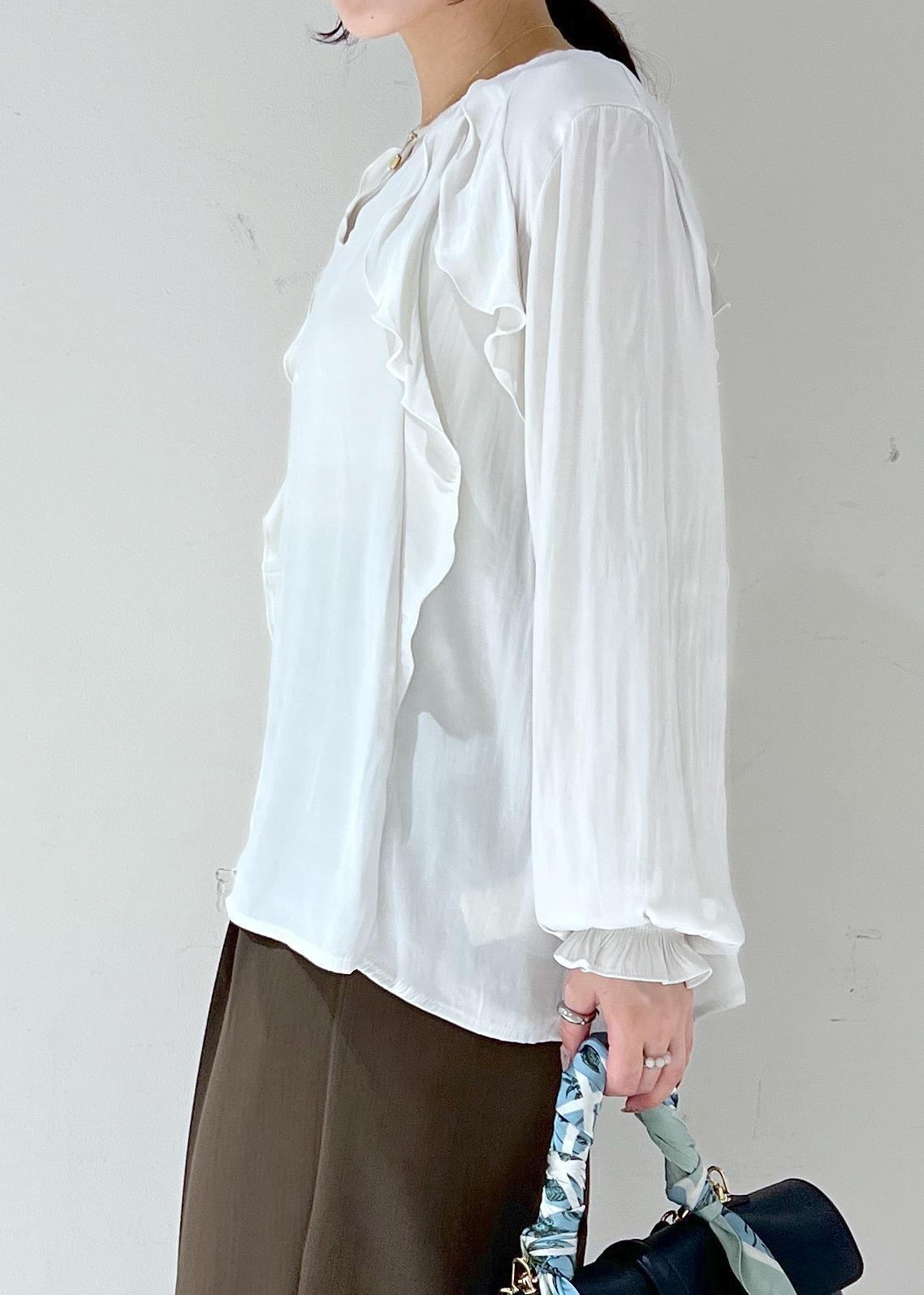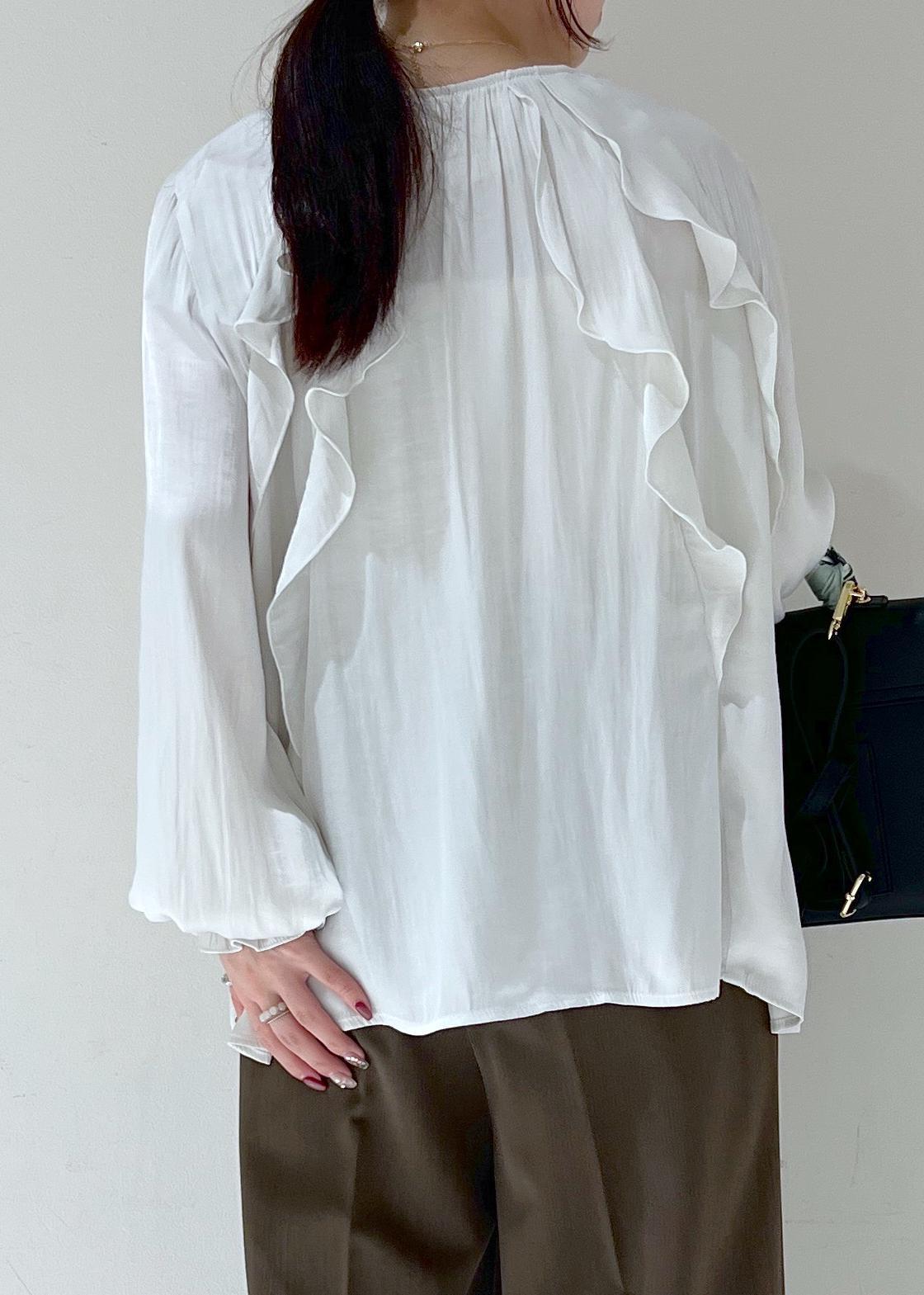 VIS割線フリルブラウス/イージーケアキナリ / F¥5,489レビュー152cmでフリーサイズ着用です