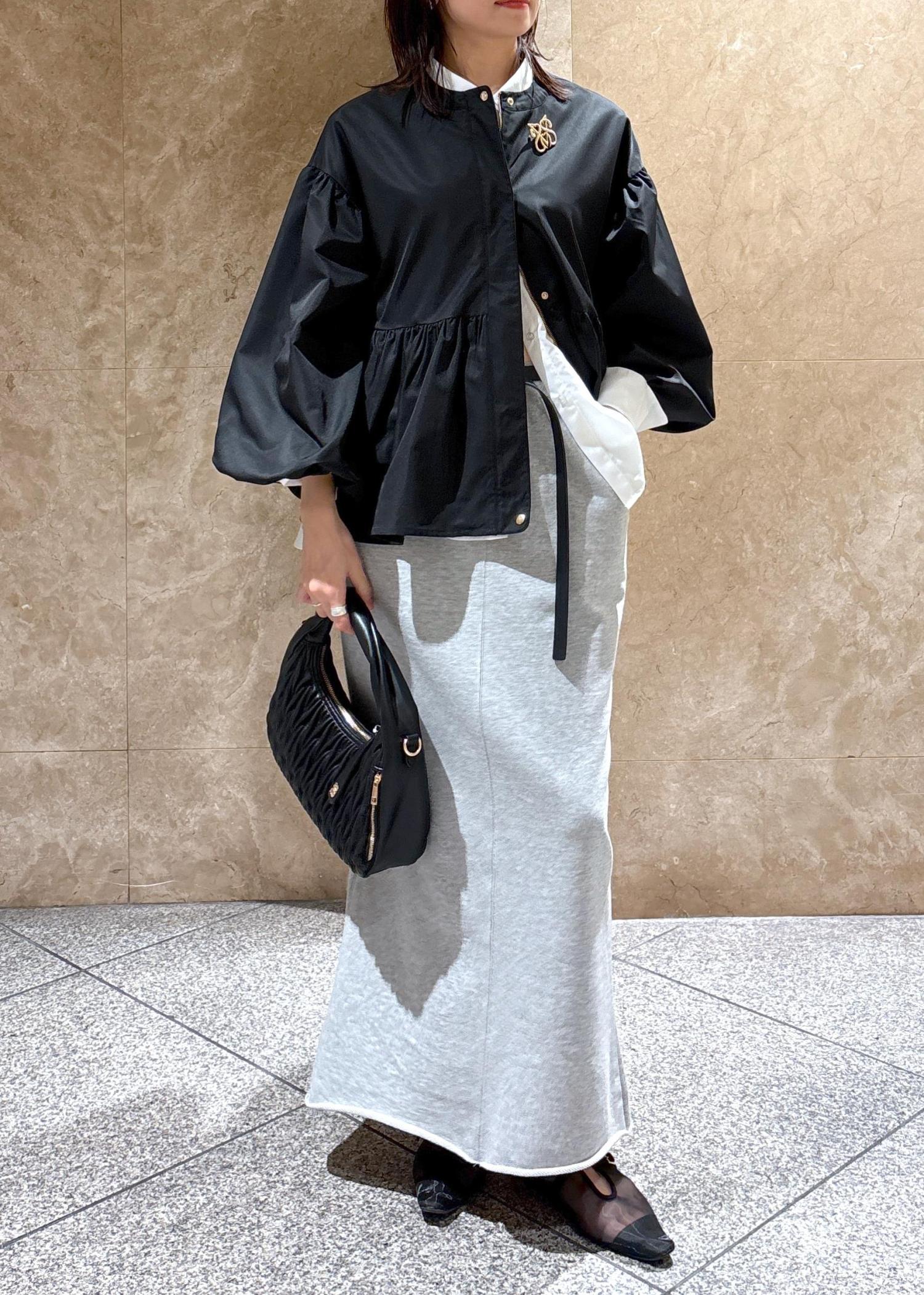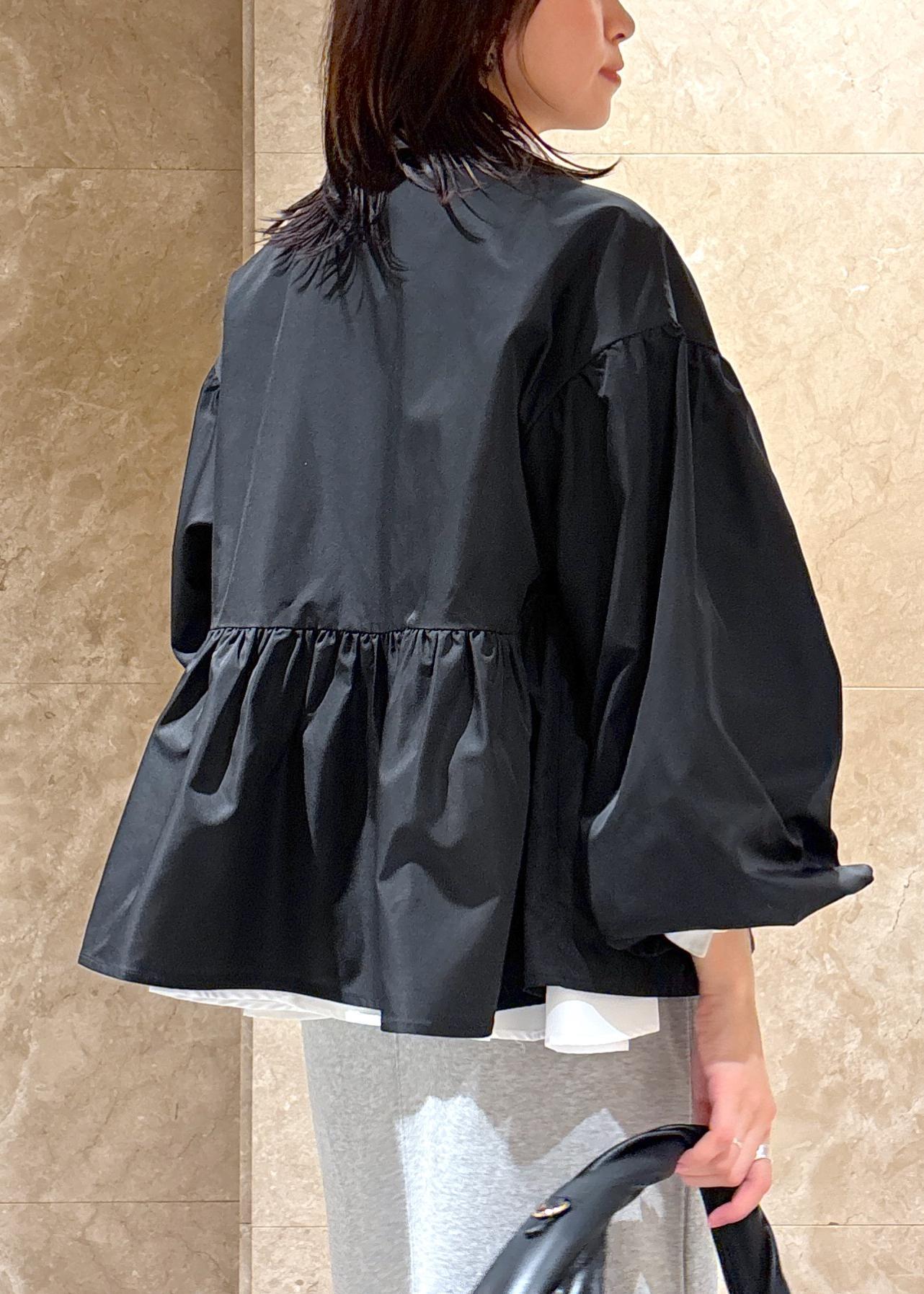 VIS【WEB限定】バルーンスリーブペプラムブルゾンブラック / F¥5,382レビュー裏地が無く、軽めのブルゾン。