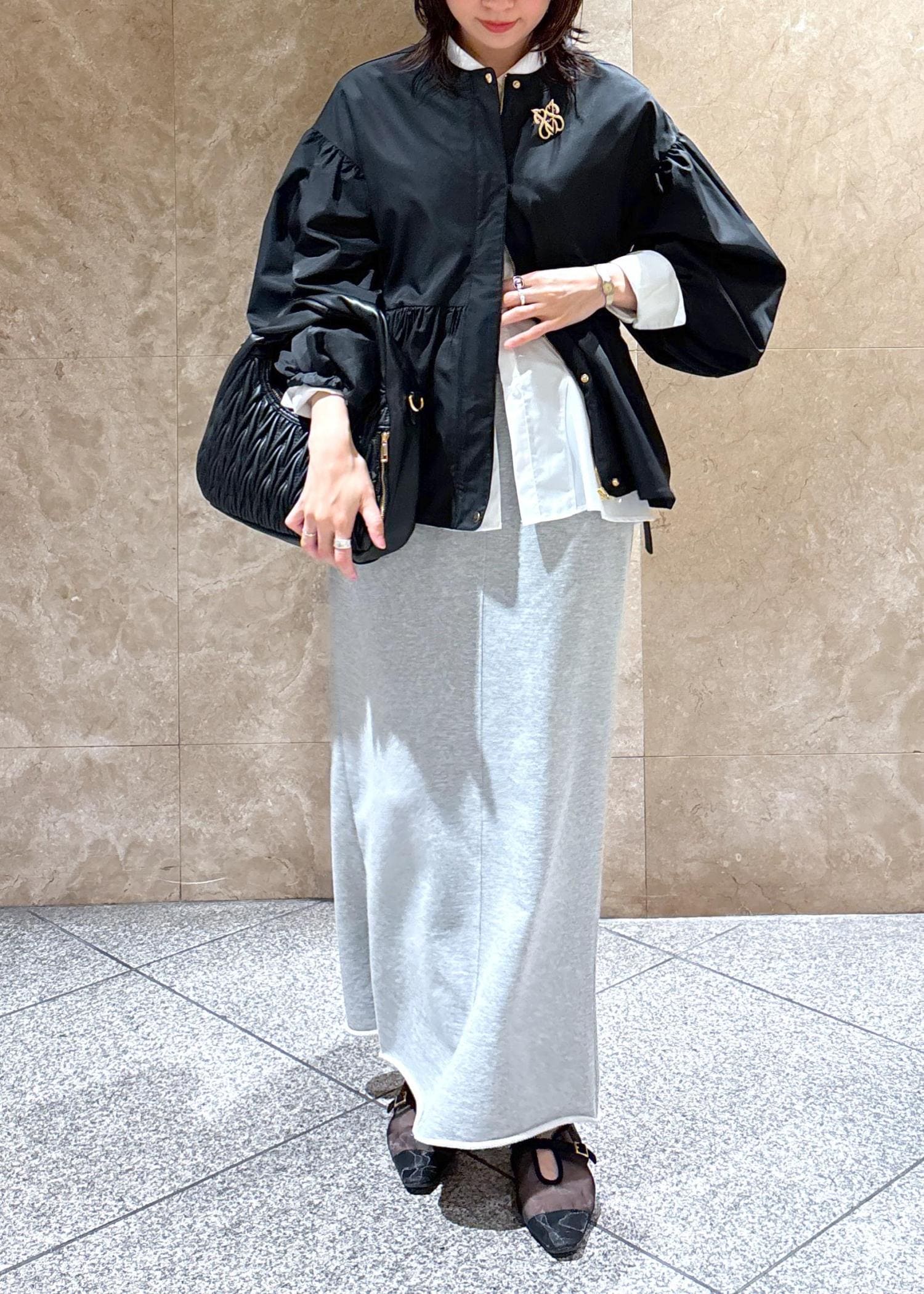 肩周りはスッキリしたシルエットなので、上からカーディガンやブルゾンなど羽織ったり重ね着がしやすかったです。 -