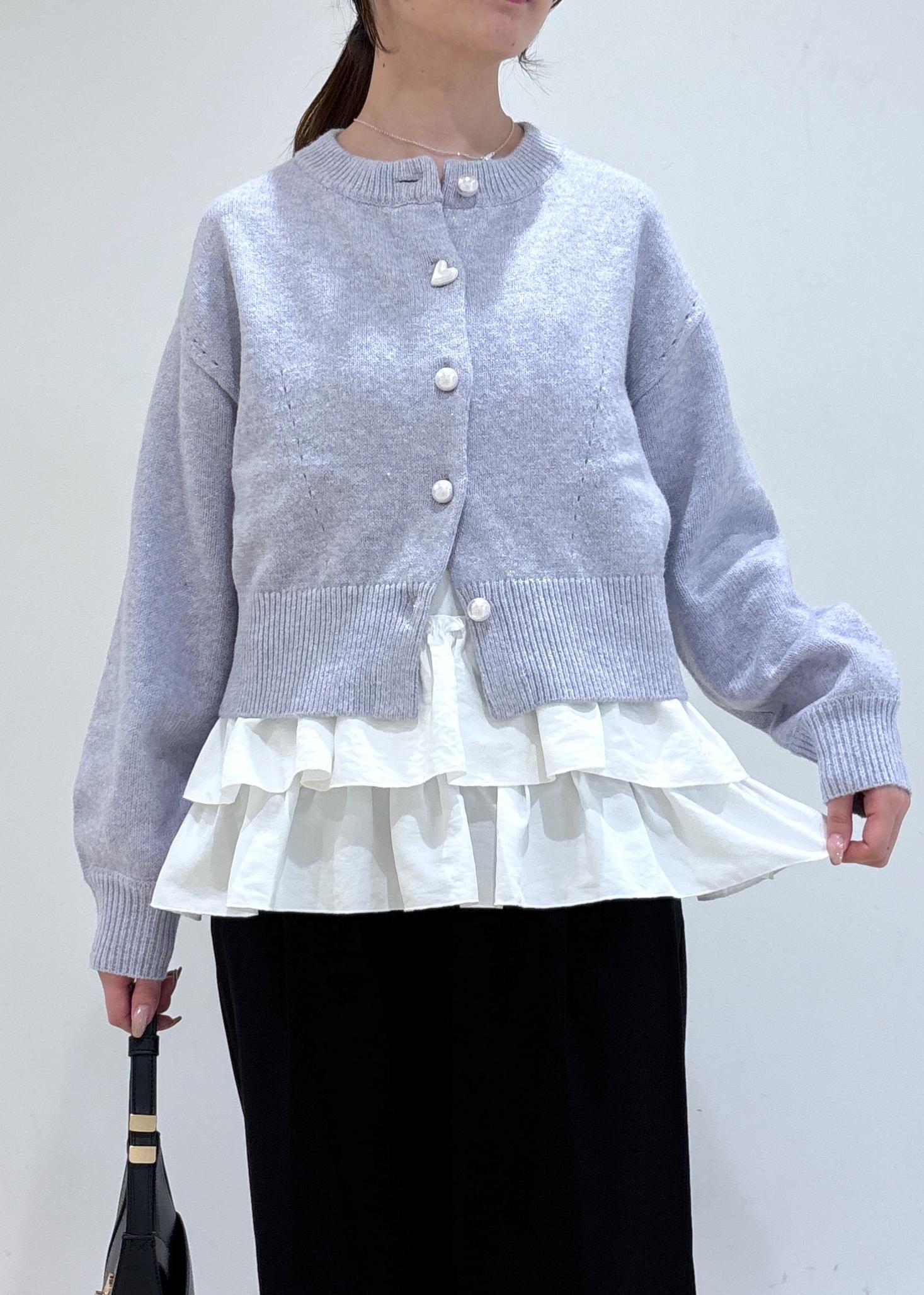 VISハートアソートパール釦ラメミックスカーディガン/イージーケア・一部WEB限定カラーパープル系 / F¥5,489レビューパールボタンが可愛く、第二ボタンがハートの形がポイントです!
