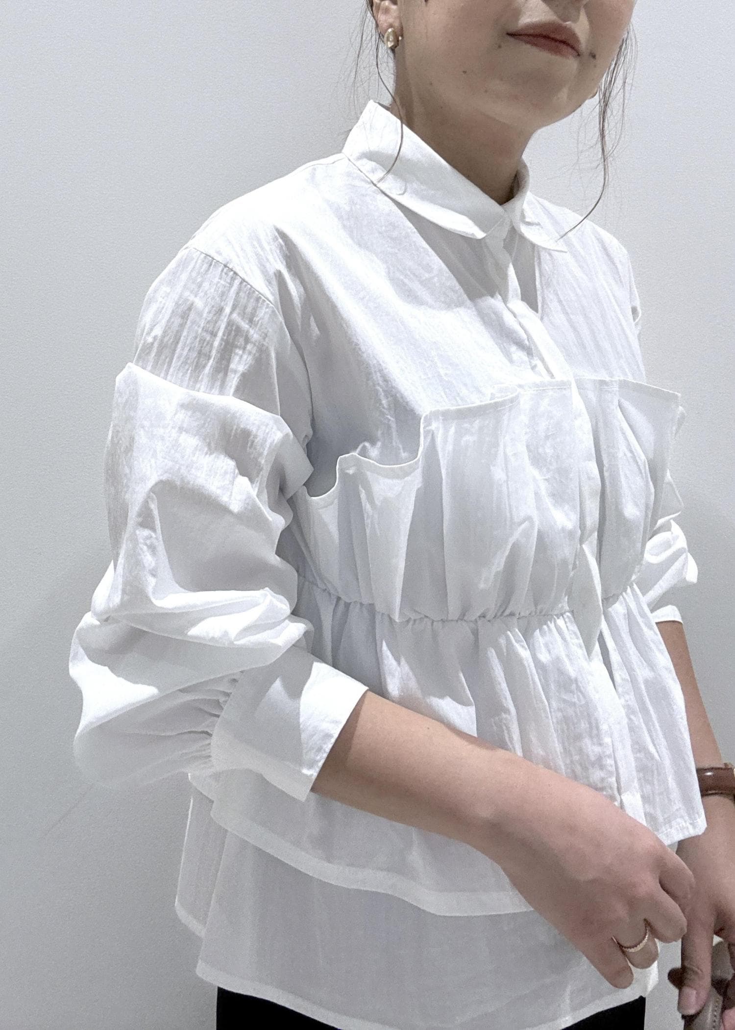 VISビスチェドッキングシャツ/イージーケアオフホワイト / F¥6,589レビュー人気のビスチェドッキングのデザインブラウスは一枚で華やかさが出ます。