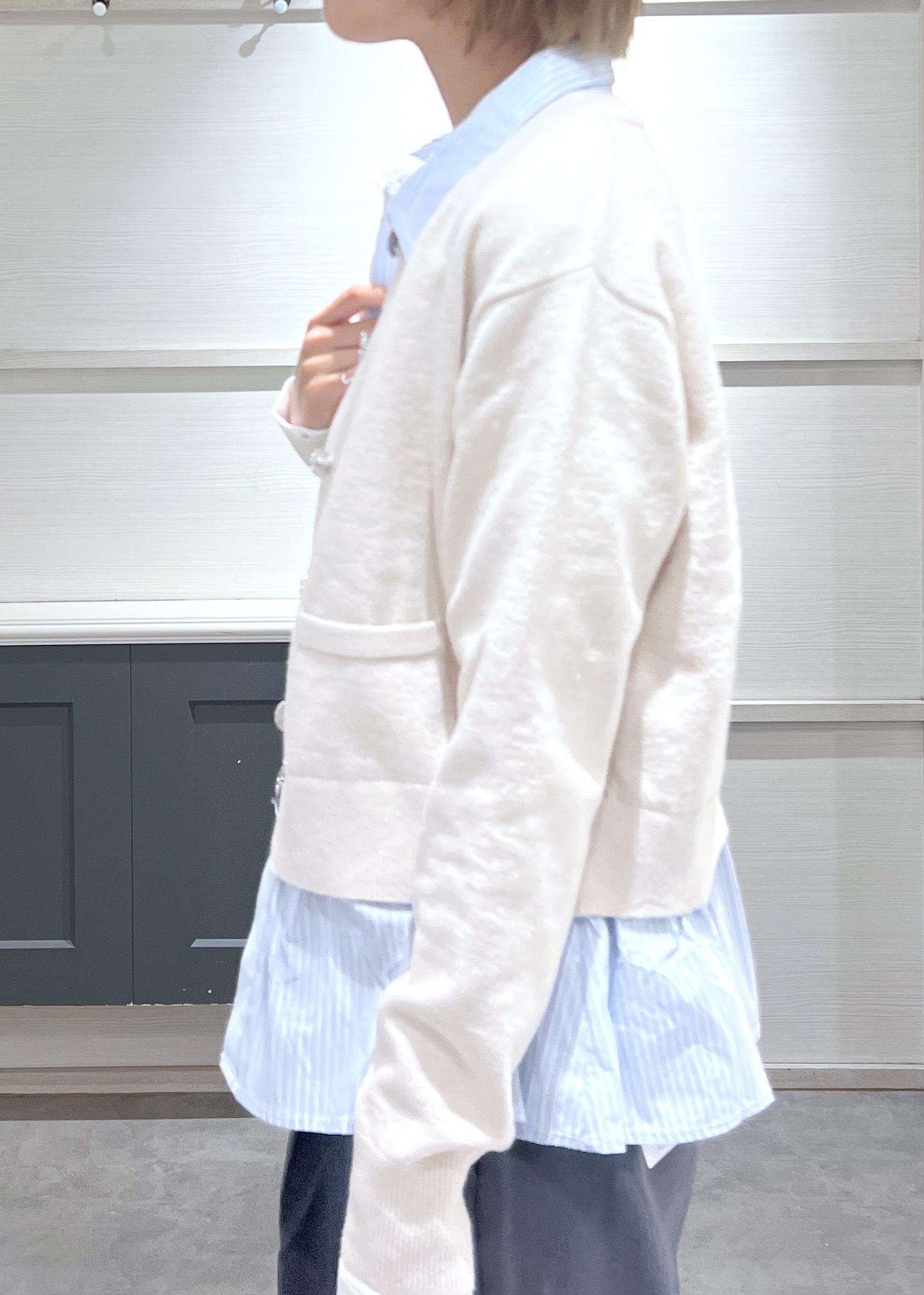 VISシャツレイヤード風メタルボタンカーディガンキナリ / F¥6,589レビュー襟と裾がドッキングされたシャツカーデです!