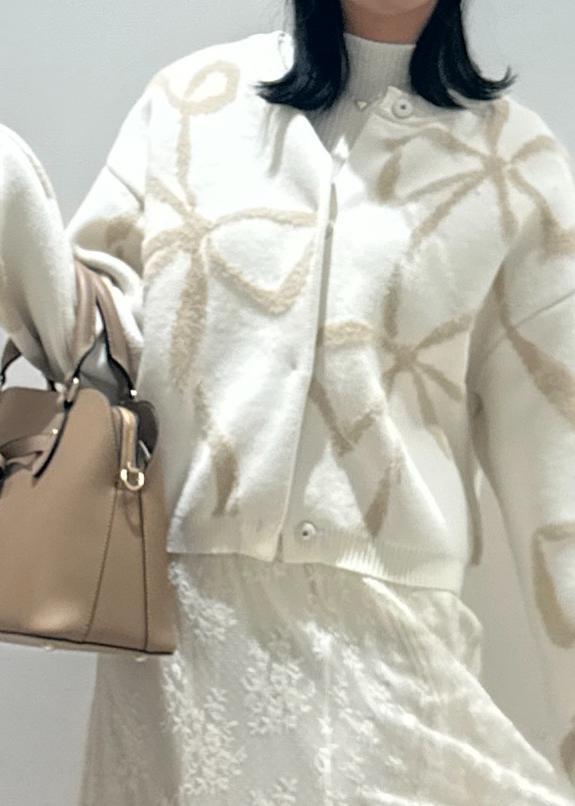 ジャカード編みで総柄風にデザインされたリボンが大人かわいいアクセントに◎