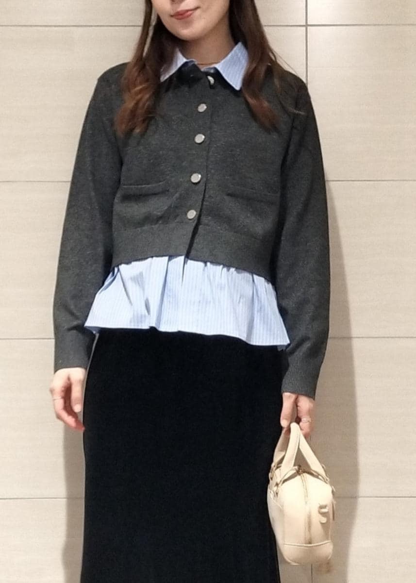 VISシャツレイヤード風メタルボタンカーディガンチャコール / F¥6,589レビューシャツにニットカーデがレイヤードされた1枚で着映えするトップスです♪