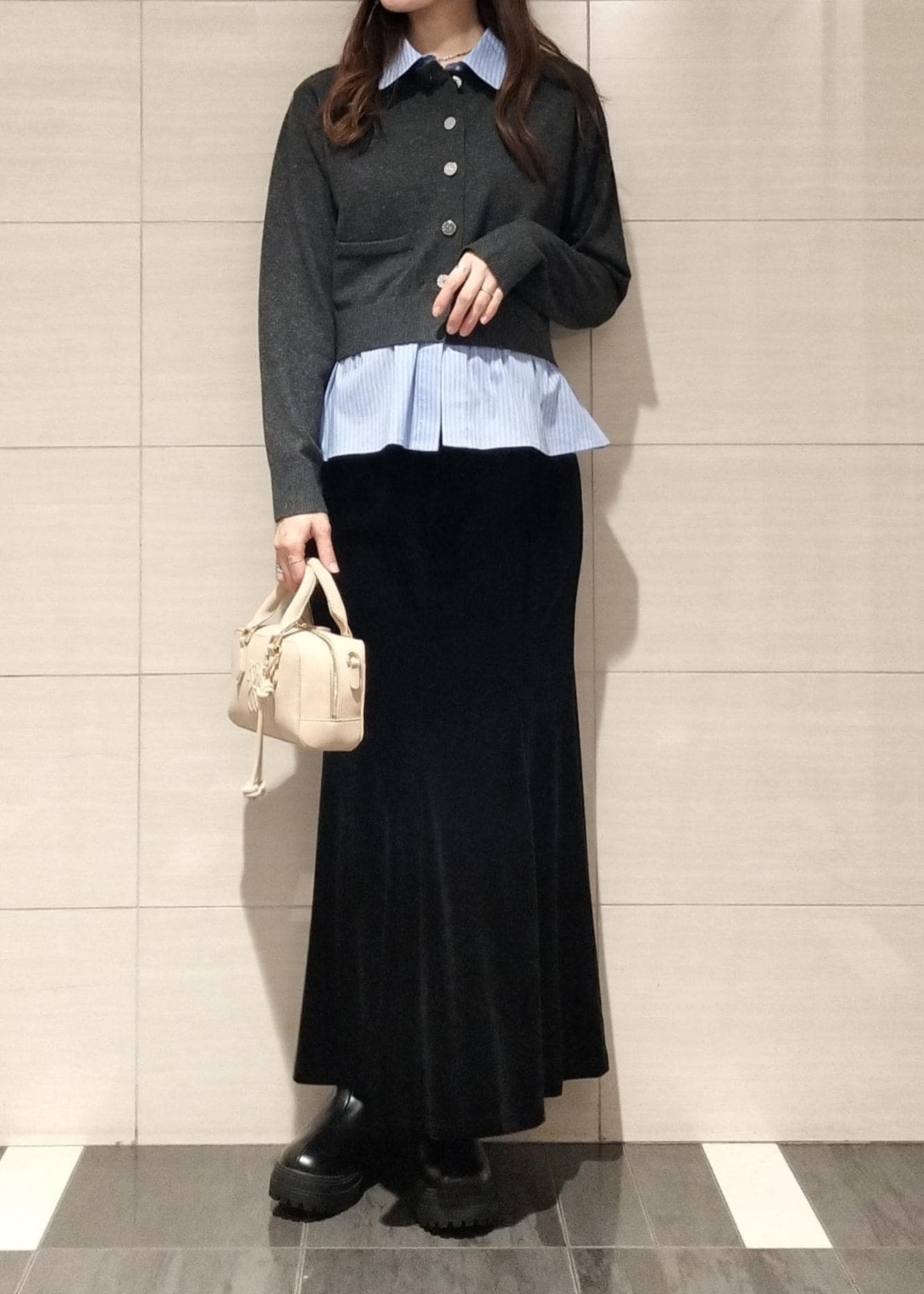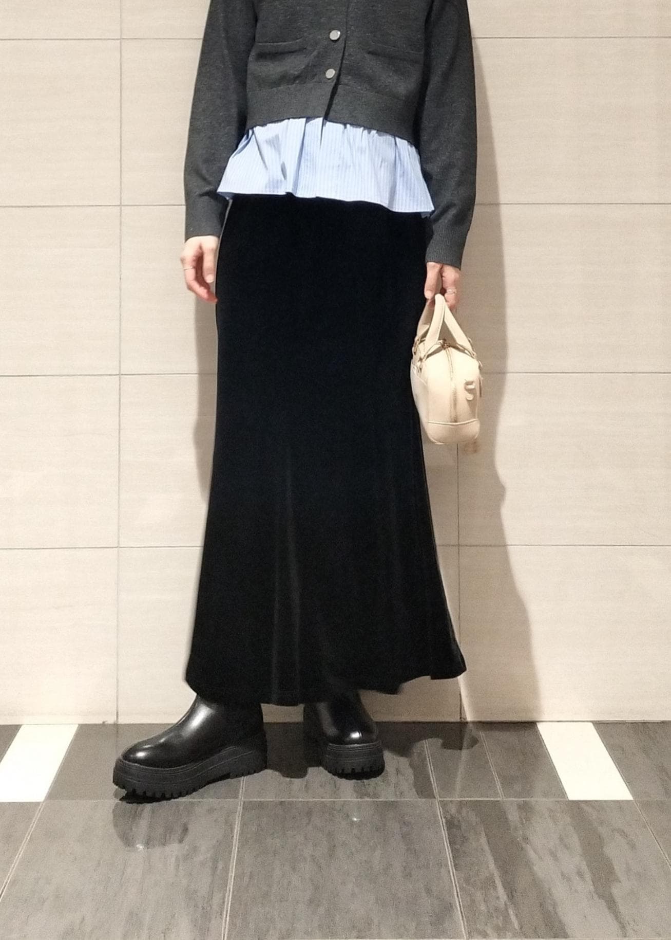 VISベロアナロースカートブラック / M¥6,589レビュー身長163㎝ Мサイズ着用しています。