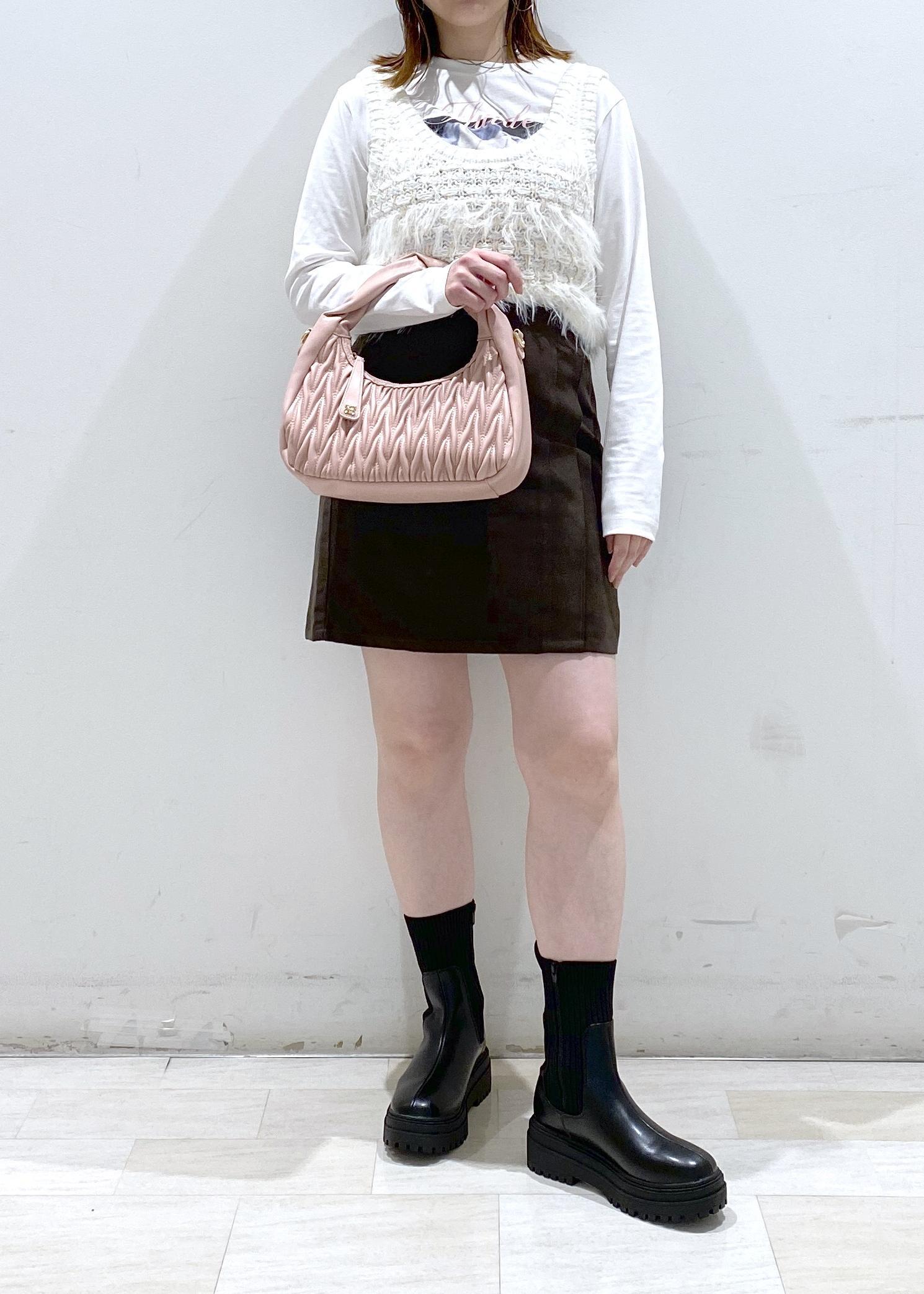 VIS釦ポイントスエードライクミニスカートダークブラウン / F¥5,929レビュースエード素材のミニ丈スカートで