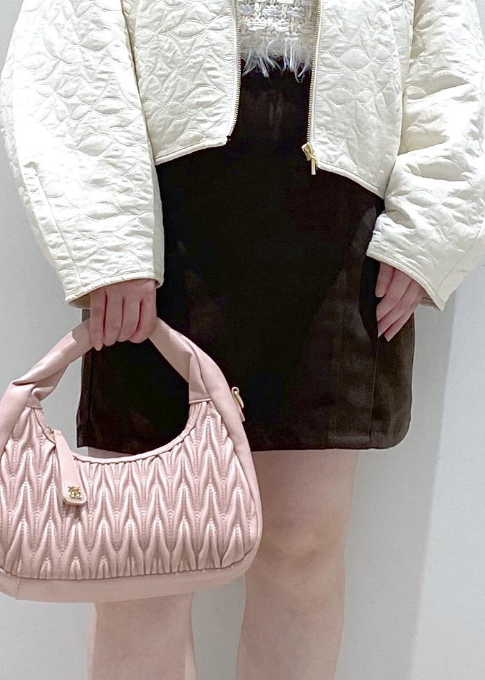 VIS【2WAY】ねじりハンドルキルティングバッグピンク系 / F¥7,909レビュー二つ折り財布やスマホの入る大きさです。