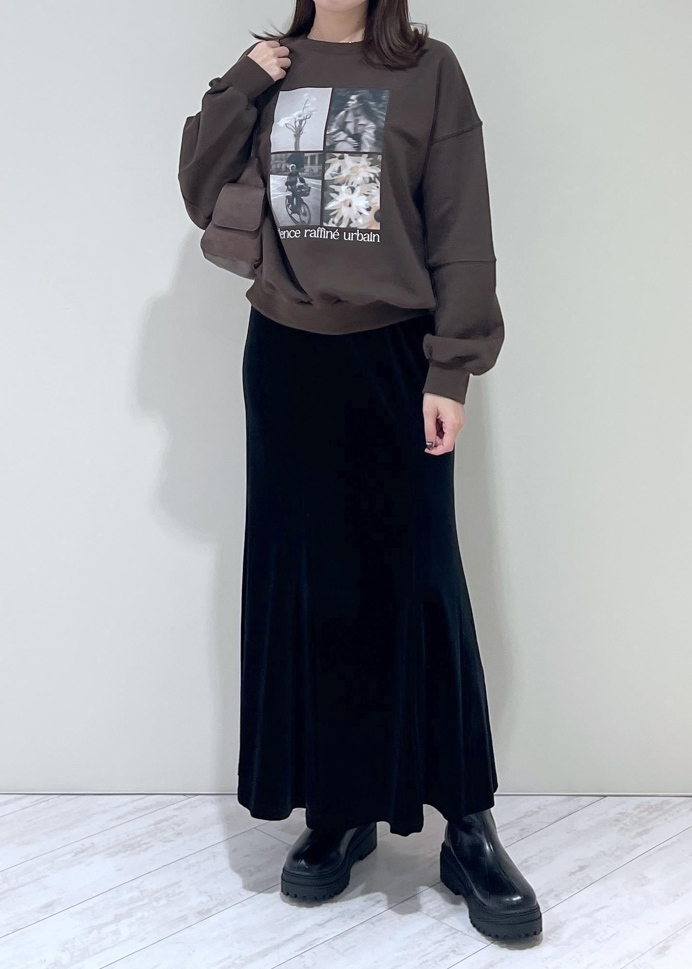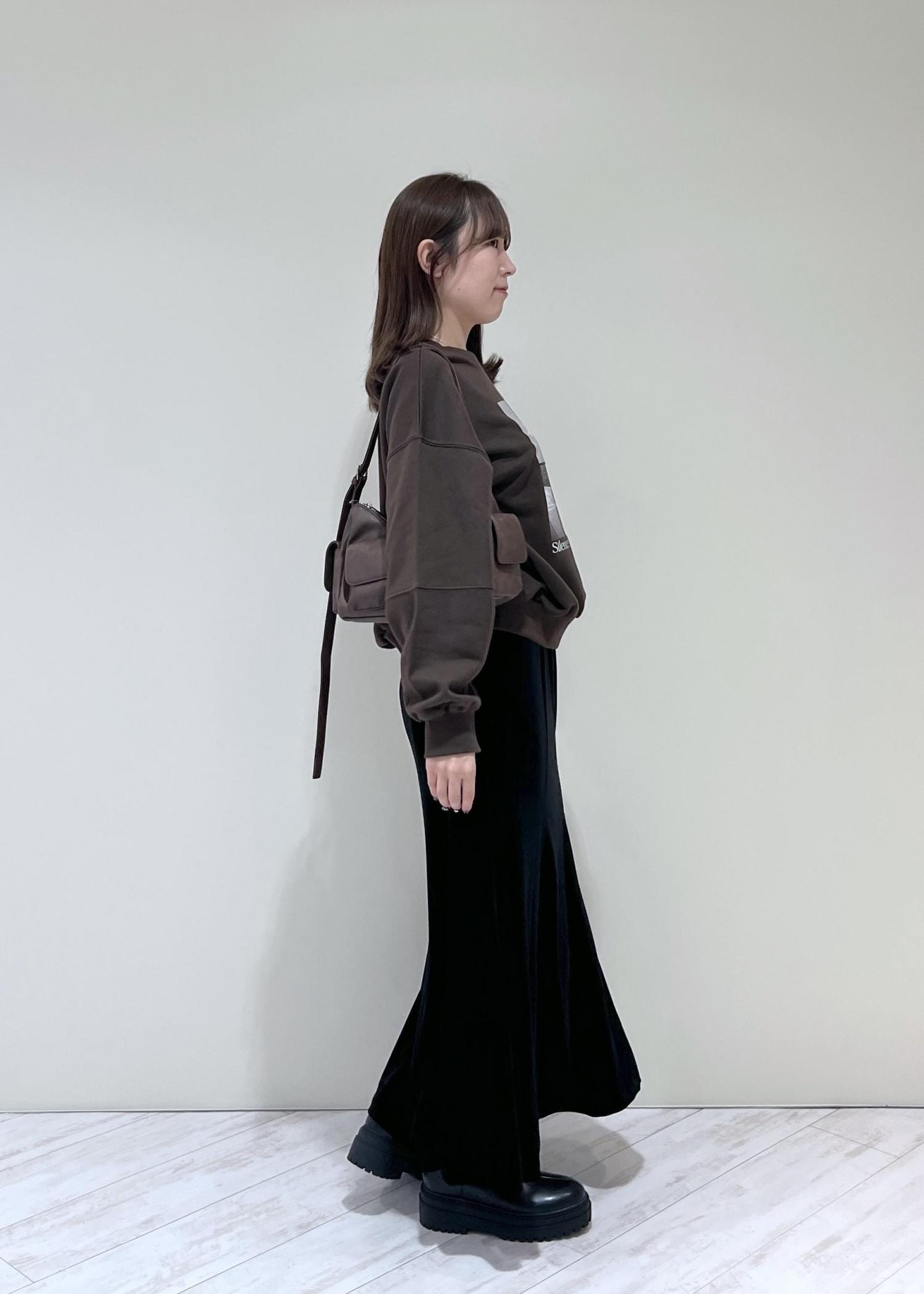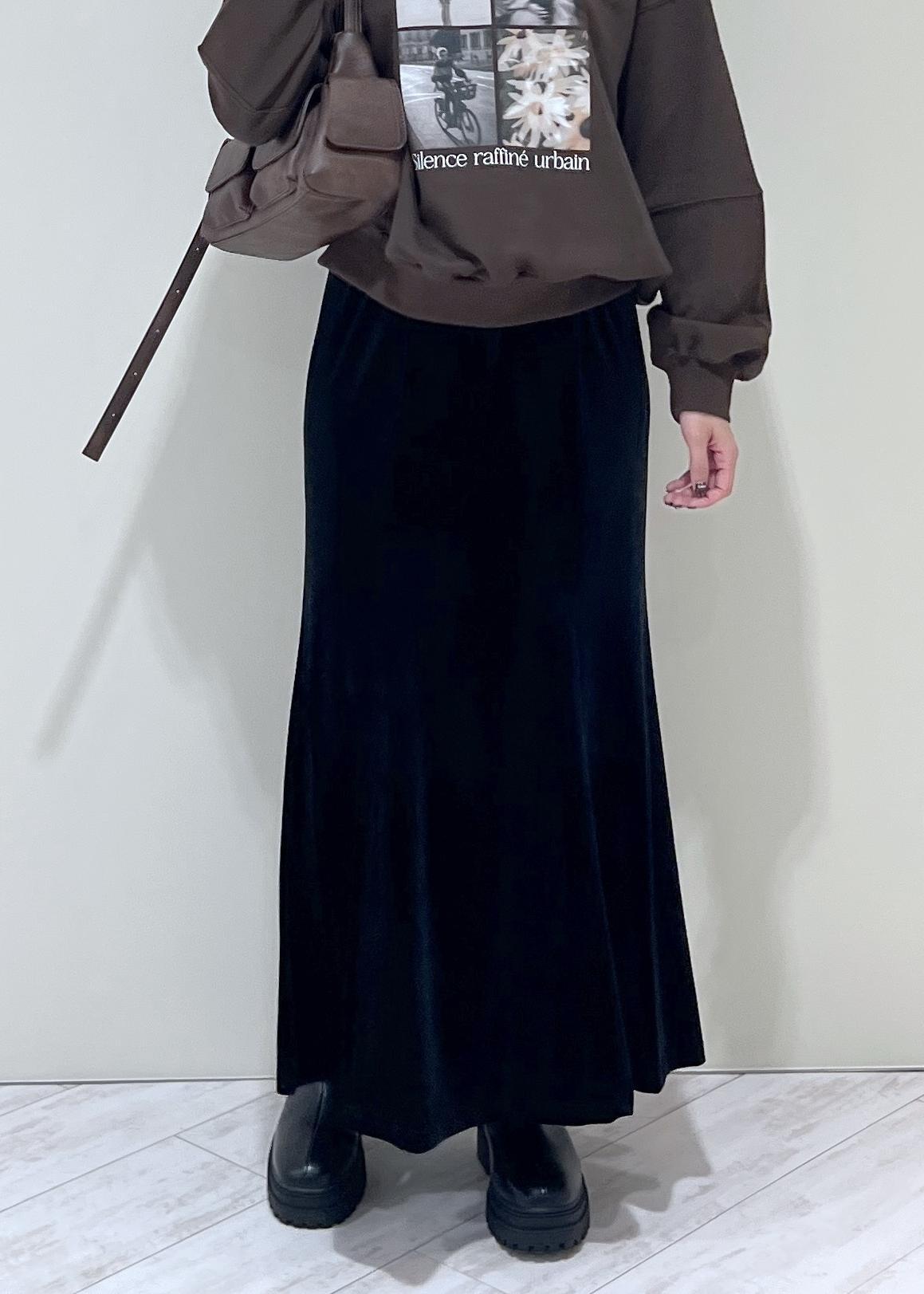 VISベロアナロースカートブラック / M¥6,589レビューベロア素材が上品見えする1枚です!ウエストは全体的にゴムなので着心地も楽ちんです。丈は身長164cmでくるぶし上でした◎