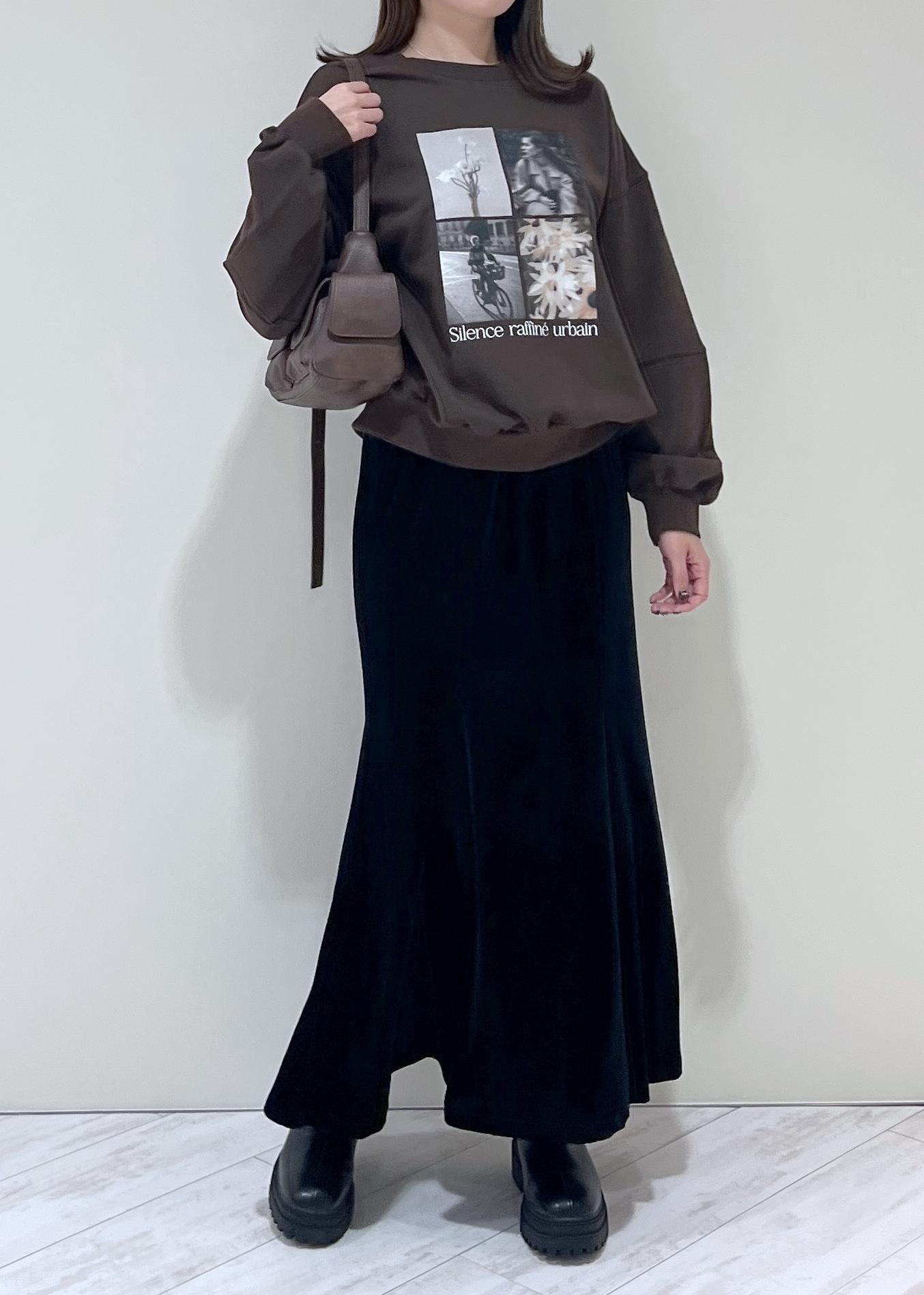 VISグラフィックアソートスウェットダークブラウン / F¥5,489レビューゆったりしたサイズ感のスウェットなのでインナーにハイネックやシャツを重ねやすいです!丈はおしりが隠れるくらいだぼっと着用出来ます◎裏起毛ではないので今の時期からちょうど良く着られます。