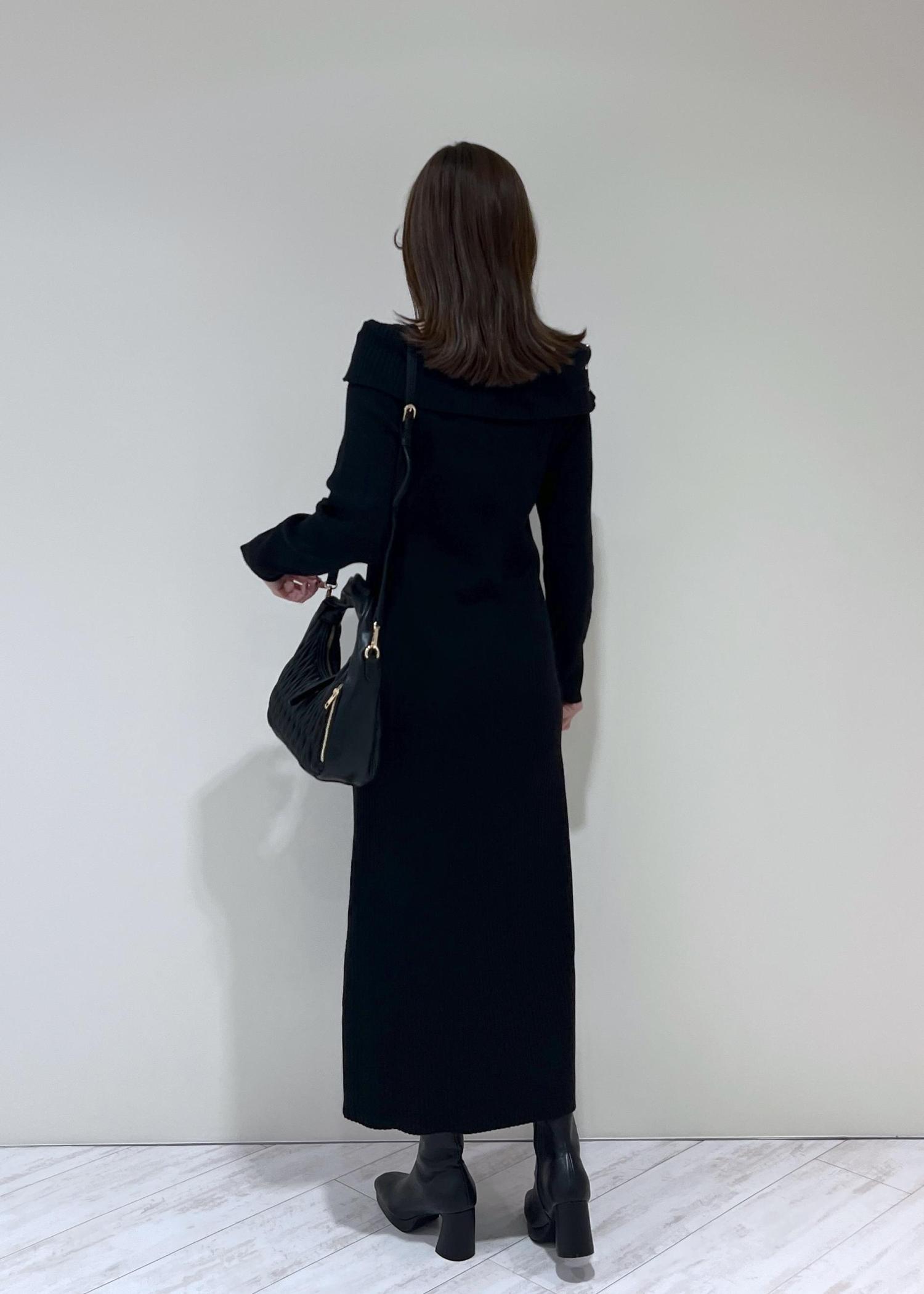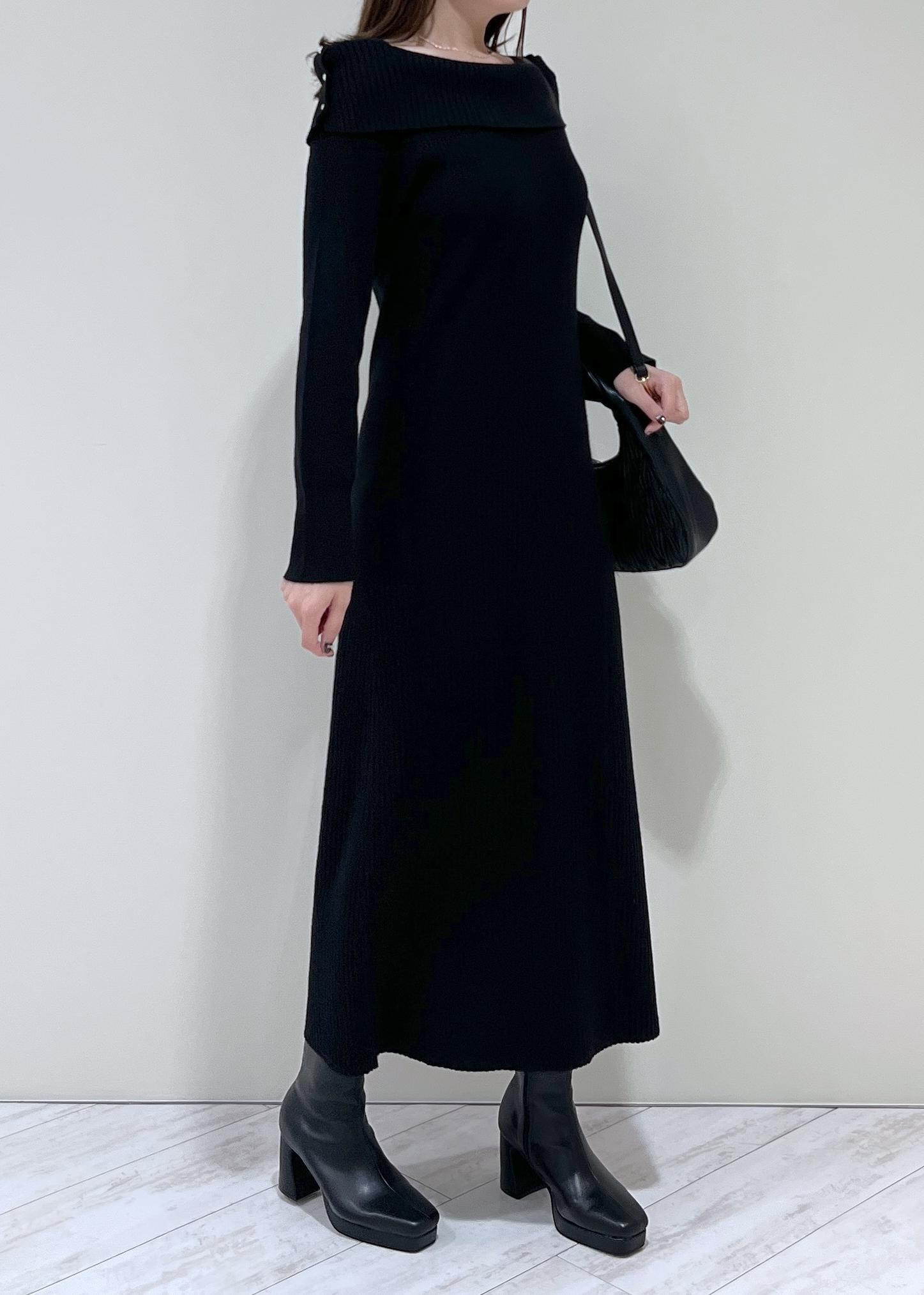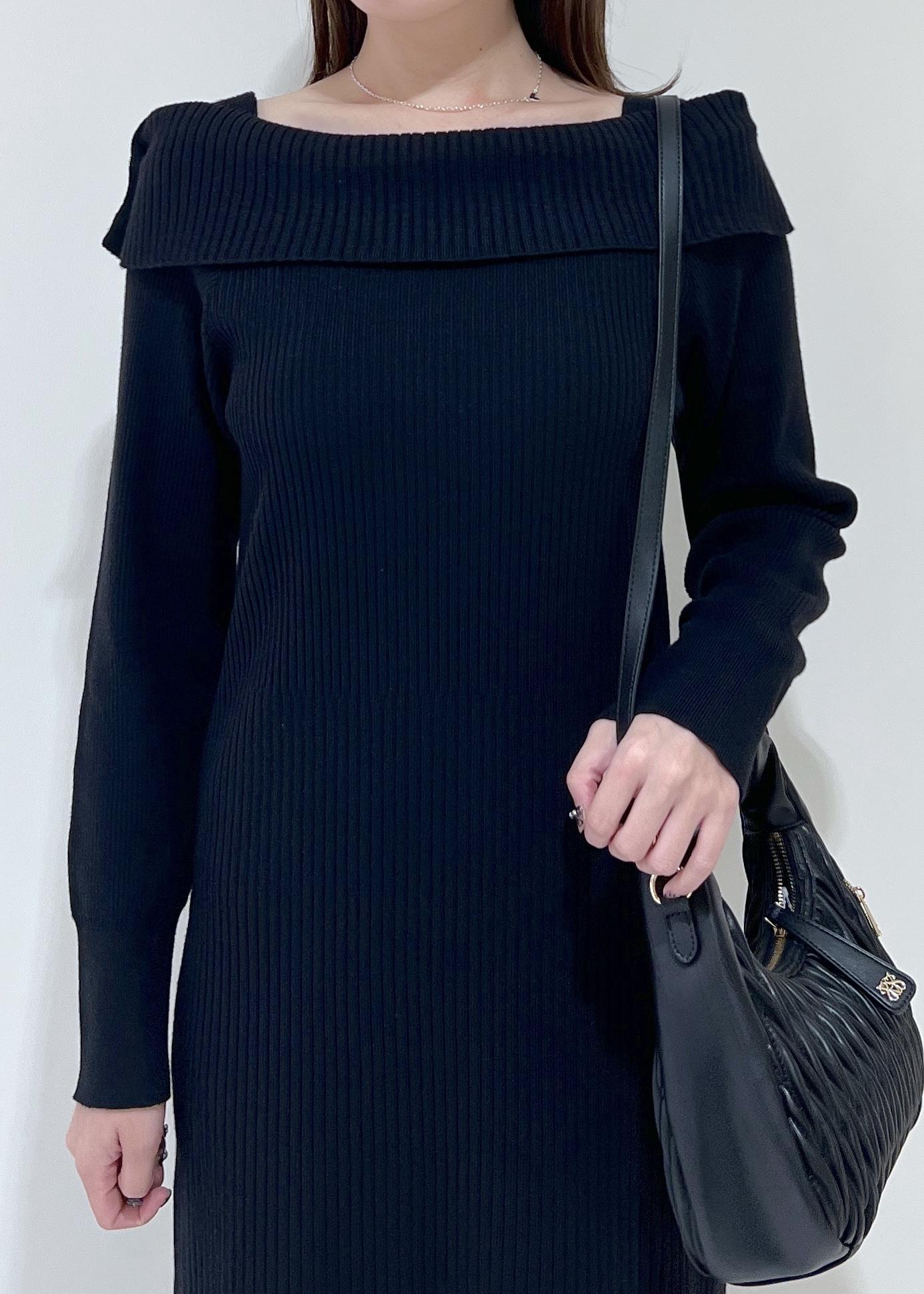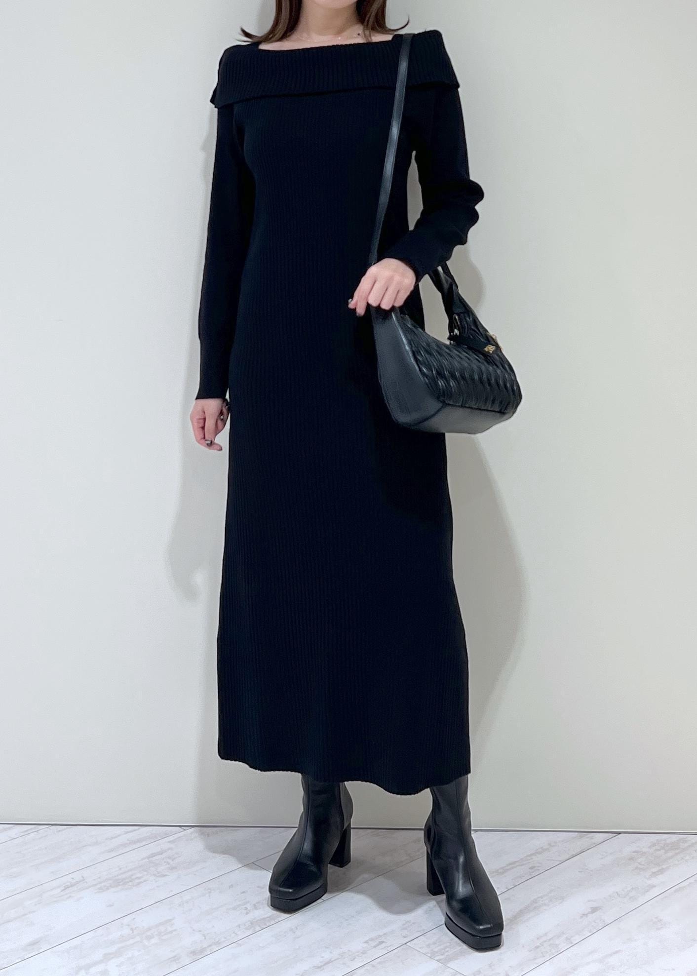 アシメオフショルリブニット美シルエットワンピース/着丈が選べる
