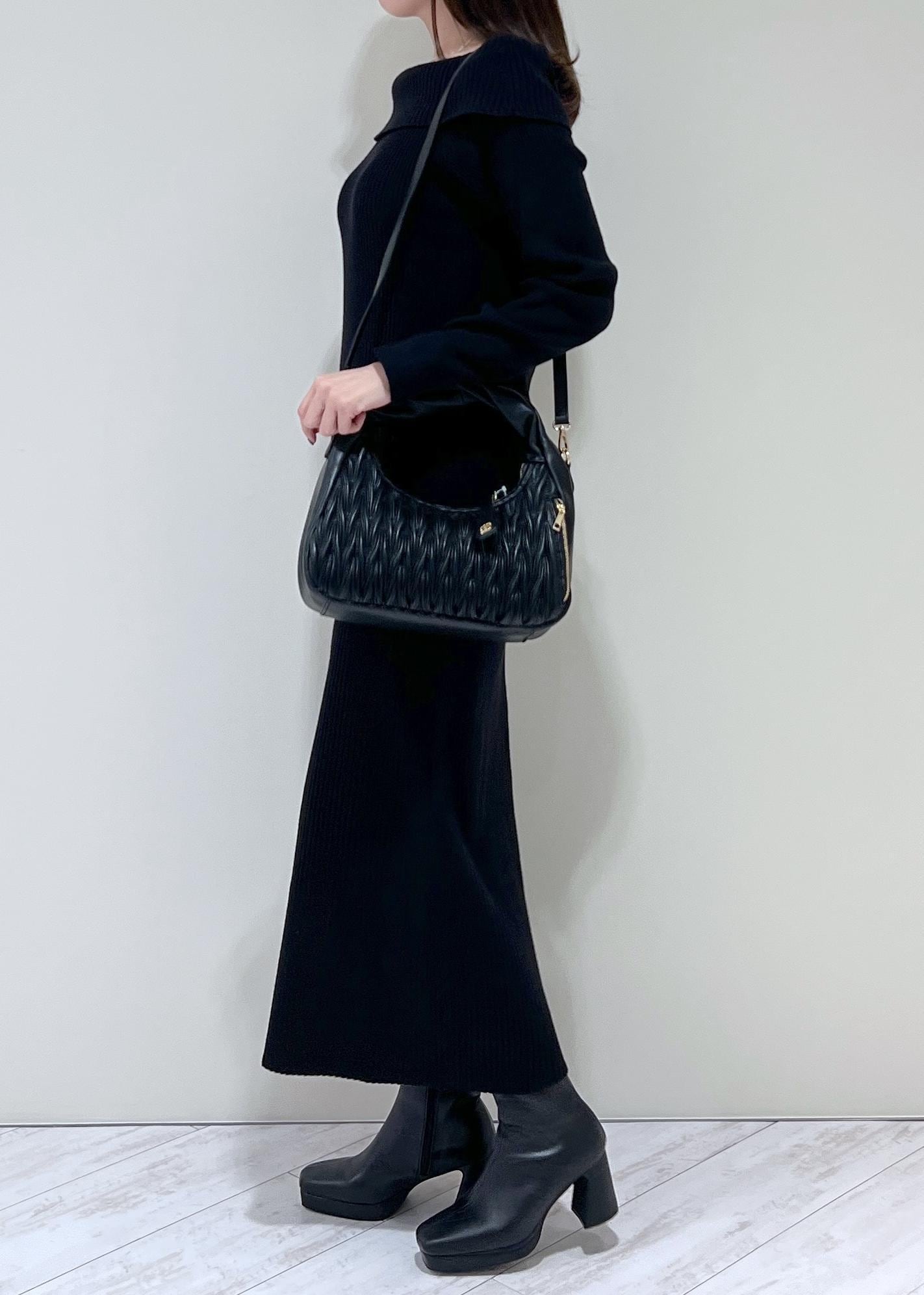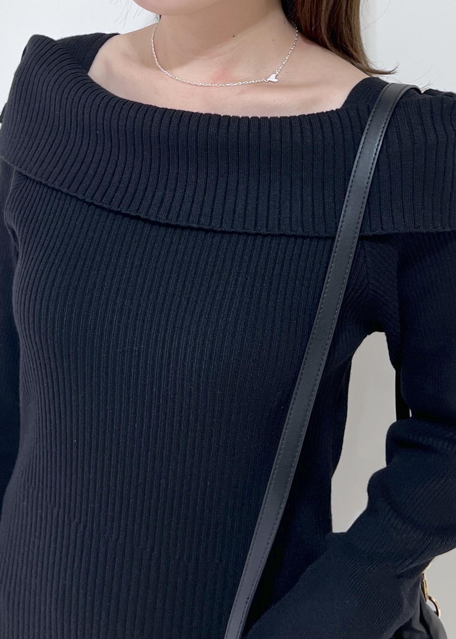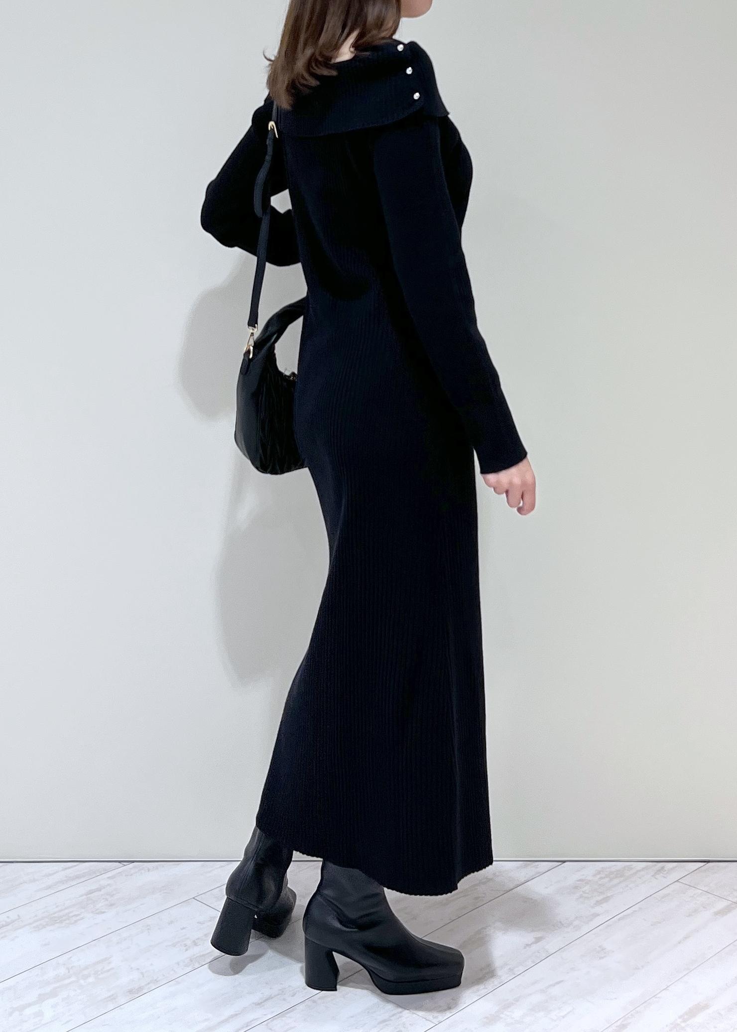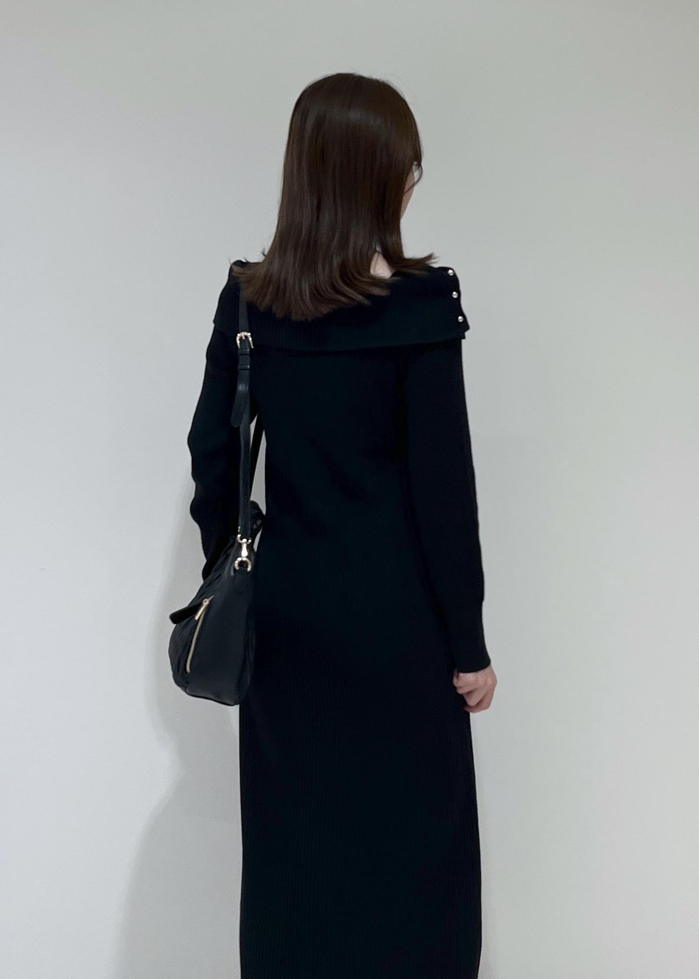 アシメオフショルリブニット美シルエットワンピース/着丈が選べる