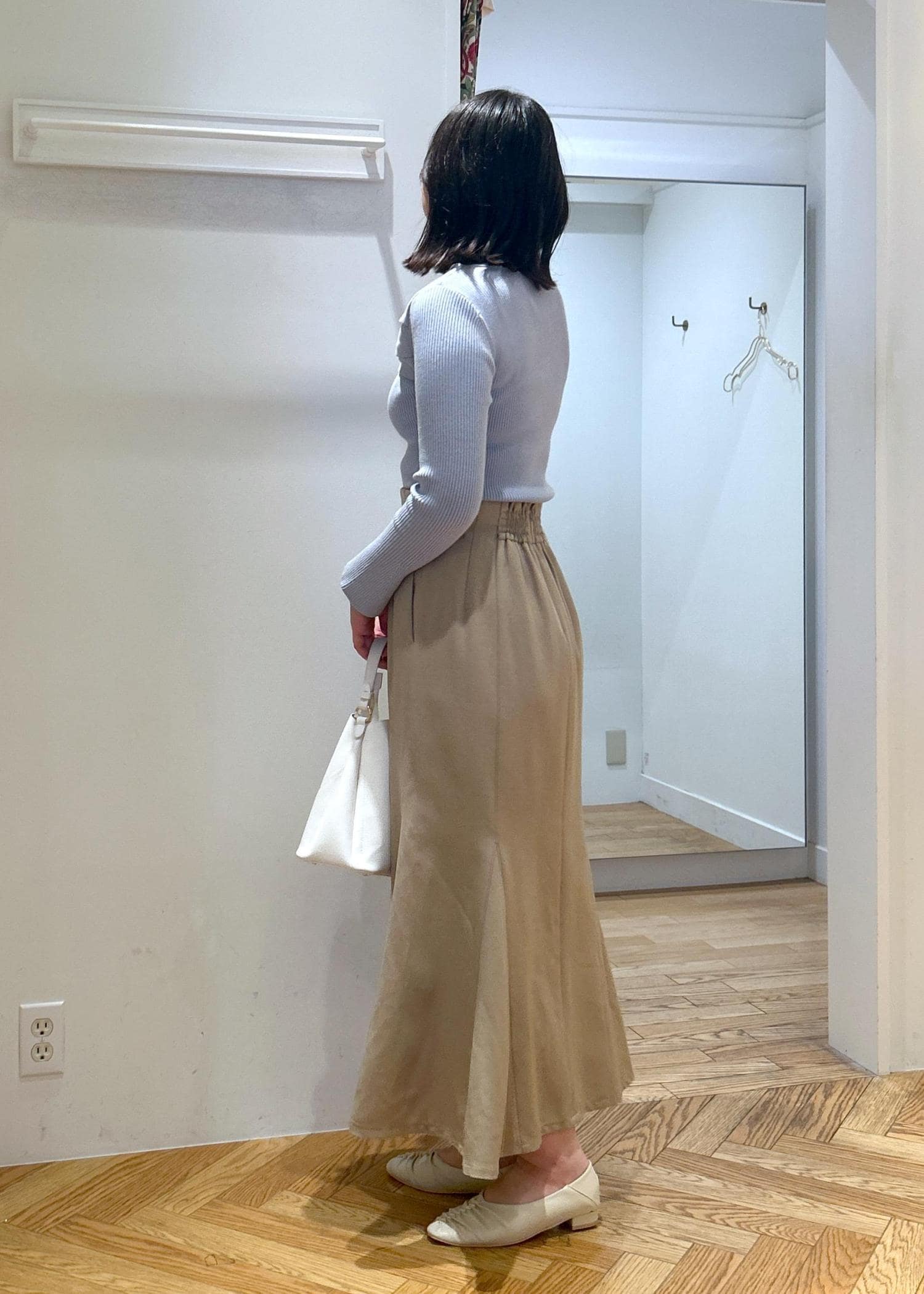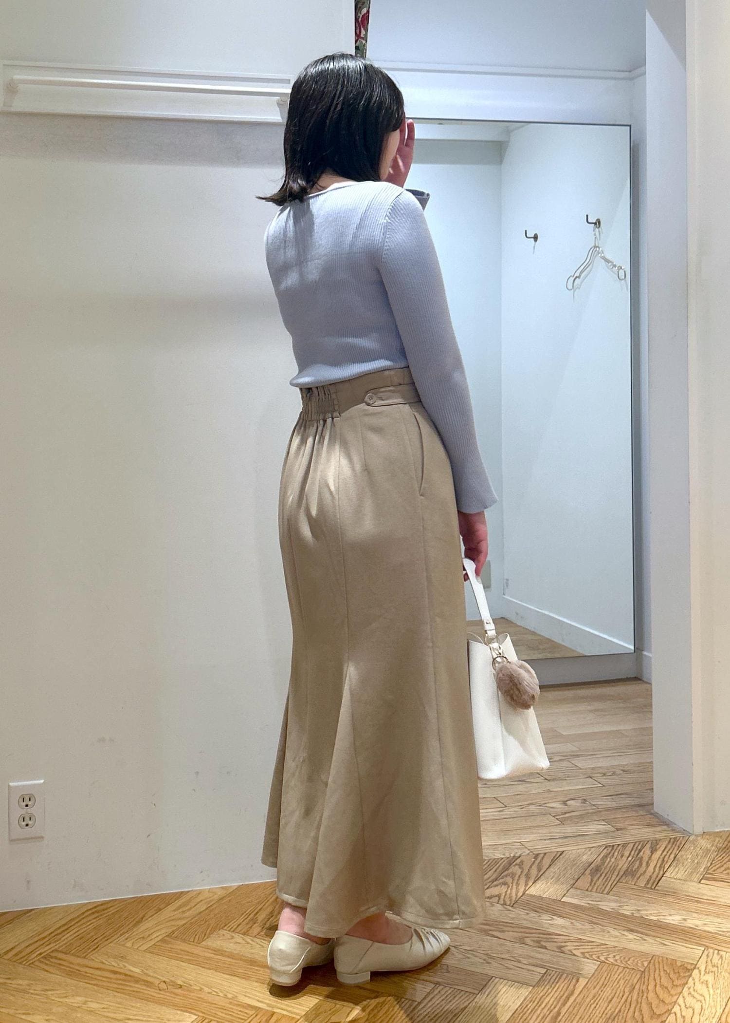 リブニットにマーメイドスカートを、あわせた綺麗見えコーデです♡