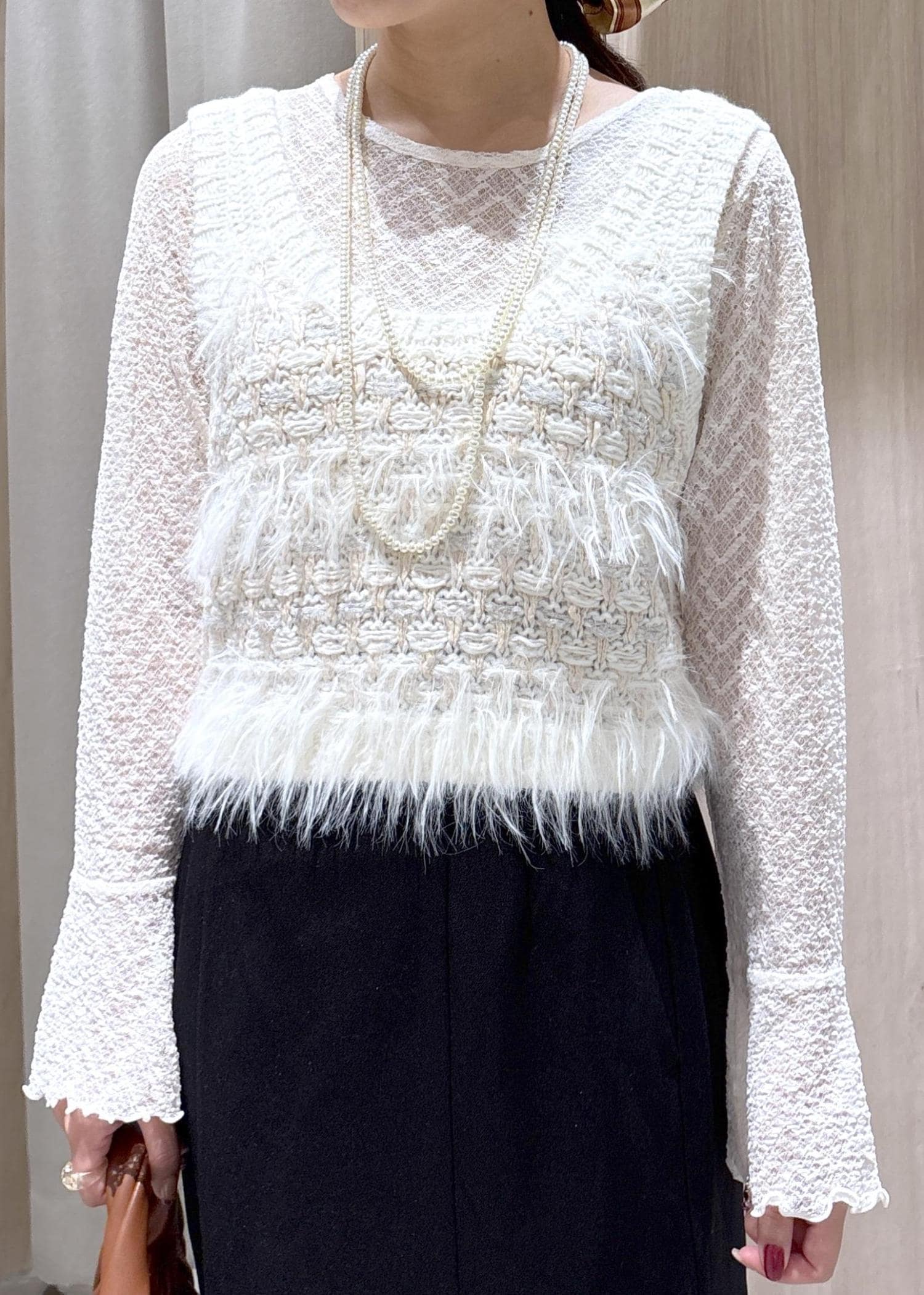 VISフェザーツイードニットビスチェ/2WAYキナリ / F¥5,489レビューショート丈のベストはコンパクトに着こなすことができますよ!